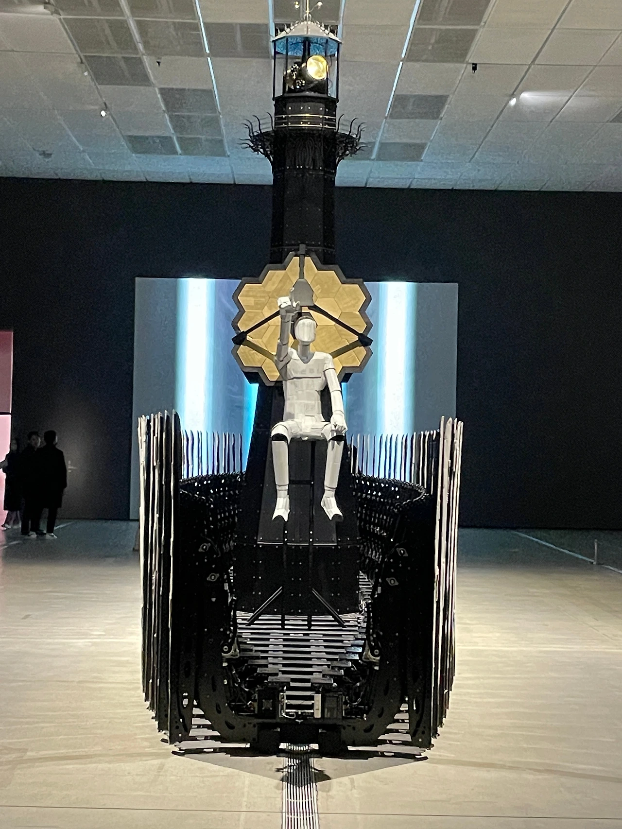 마침내 방주는 항해를 시작한다. 거대한 노는 날개를 펼치듯 움직이며 성스러운 항해를 해내가는 듯하다. 물론, 이 성스러움 역시 얼마 가지 못해 장송곡을 연상시킨다. 열심히 움직이는 노 중에 몇 개는 움직임이 이상하고 저 방주의 ‘두 선장’은 정반대 방향을 가리키고 있다. 열심히 노는 움직이지만 방주 자체는 늘 제자리일 뿐이다. 이 와중에 ‘무한공간’은 신기함 너머 우리를 끊임없이 뒤쫓는 감시자의 눈을 닮았다. 전시를 보는 내내 불편함이 가시질 않는다. 함께 온 사람들은 신기함에 탄성을 지르는데 나는 마음 한켠이 아리다. 다큐멘터리 카우스피라시를 보면서 느꼈던 동일한 불편함과 부채 의식이 올라오고 있었다. 어쩌면 우리는 비극적으로 끝을 맺을 수밖에 없는 영화를 찍고 있는지도 모르겠다.
