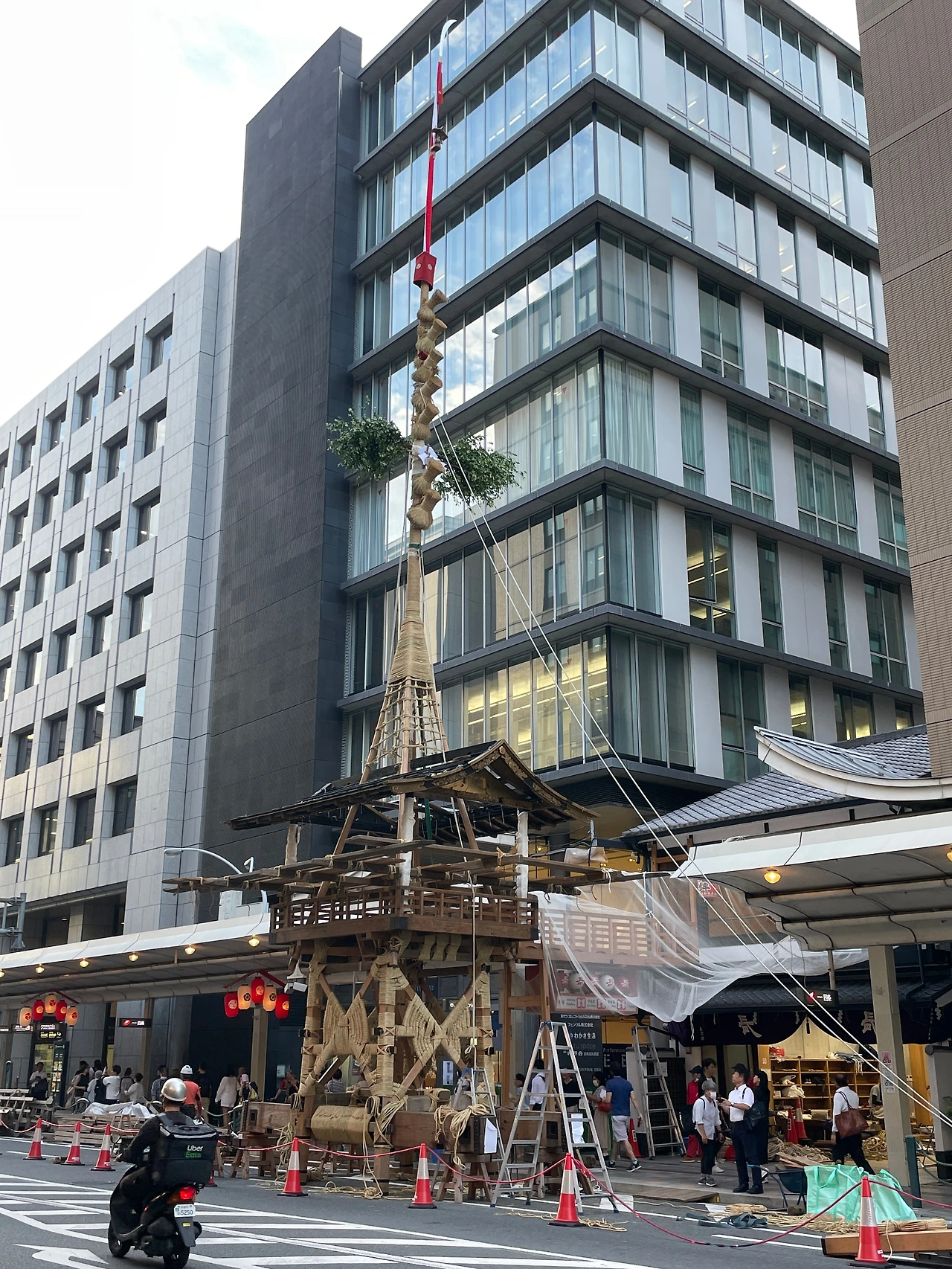 내가 교토에 오고 싶었던 건 순전히 '마츠리' 때문이었다. 그런데 비행기 티케팅에 늑장을 부리기도 했고 갑자기 생긴 다른 일정 때문에 마츠리는 포기하고 마츠리 바로 전 주간에 오게 된 것이다. 일주일 전이라도 뭔가 마츠리의 분위기를 느낄 수 있을까 기대해서 저녁 때는 야사카 신사로 주욱 이어지는 길을 거닐었다. 내가 원했던 마츠리의 분위기는 없었지만 기온 마츠리의 꽃이라 할 수 있는 야마호코가 만들어지고 있는 듯했다.