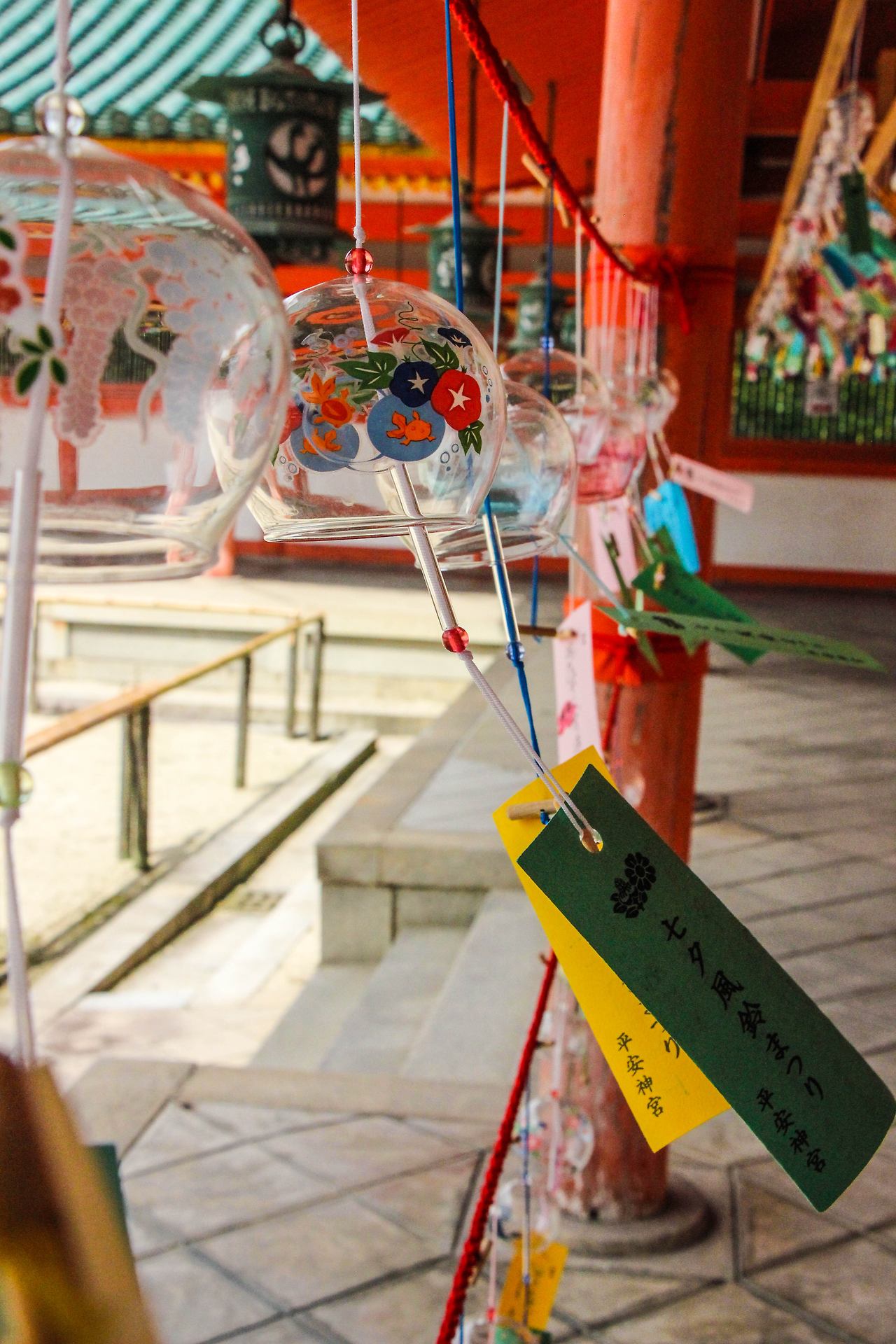 비라도 내릴 듯 하늘은 어두워지고 바람이 세게 불기 시작한다. 바람이 불 때마다 수많은 유리잔이 부딪치는 소리가 들린다. 후링이다. 우리나라에서는 풍경이라고 불리는 유리종으로 일본의 여름을 떠올리면 꼭 함께 생각나는 것이 바로 이 풍령 즉, 후링의 소리다. 일본에서는 이 후링에 소원을 적어 신사에 매단다고 하는데 그게 여기 헤이안 신궁에도 있었던 것이다.