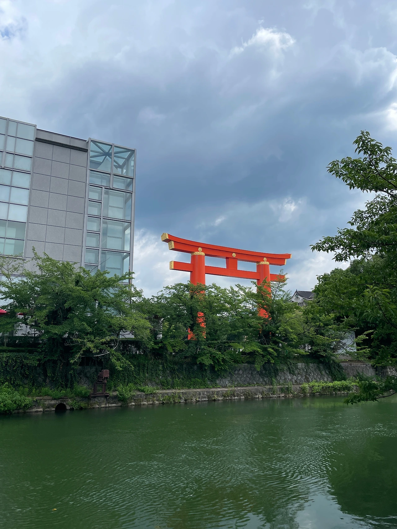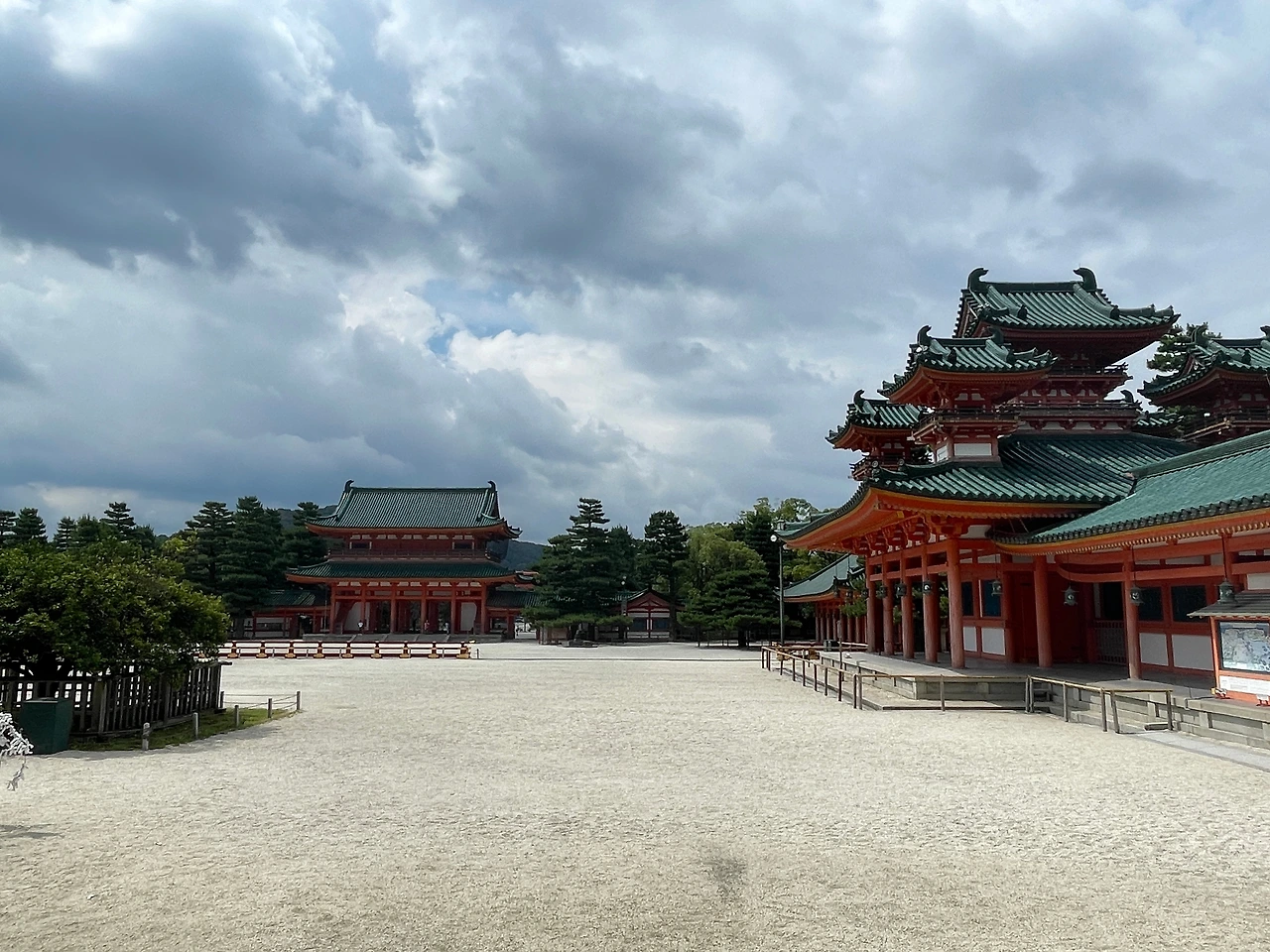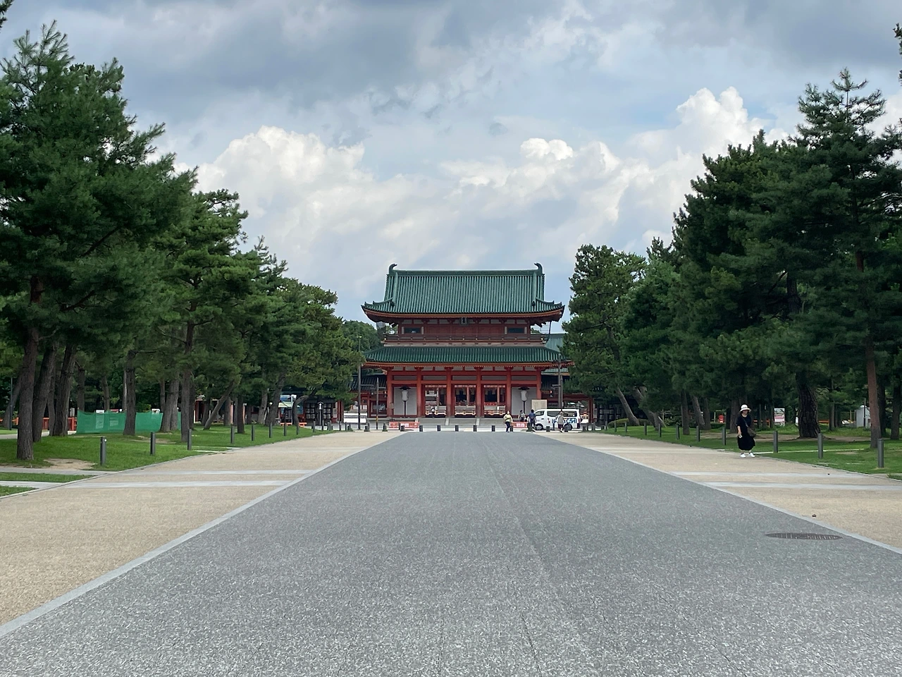 곧바로 철학의 길로 가려고 했으나 일일 버스권도 아낌없이 쓰고 싶은 마음에 헤이안 신궁으로 향하기로 했다. 버스에서 내려 구글 지도를 켜서 대충 방향을 잡은 후에는 감으로 걷는다. 여행의 목적지도 중요하지만 그 목적지에 다다르는 여정도 중요한 법. 길을 잘못 들었으면 다시 돌아나오면 그뿐. 내가 걷고 있는 길과 그 글 위에 지어진 집 한 채, 다리 하나, 나무 한 그루와 풀들도 이번 여행에서는 중요한 '목적'이자 '목적지'이다. 대충 방향을 익히고 걷는데 다행스럽게도(?) 먼발치에서도 신궁임을 알려주는 도리이가 보인다. 선명한 주홍빛깔의 도리이가 있는 쪽을 향해 걷는데 외롭지 말라고 옆에 작은 강줄기도 함께 걷는다. 그렇게 도착한 헤이안 신궁은 딱 봐도 지어진 지 오래되지는 않아 보였다. 화려한 건축 양식과 건물의 색감이 인상적이다. 거기에 넓은 마당까지 갖추고 있어 위세가 당당하다.
