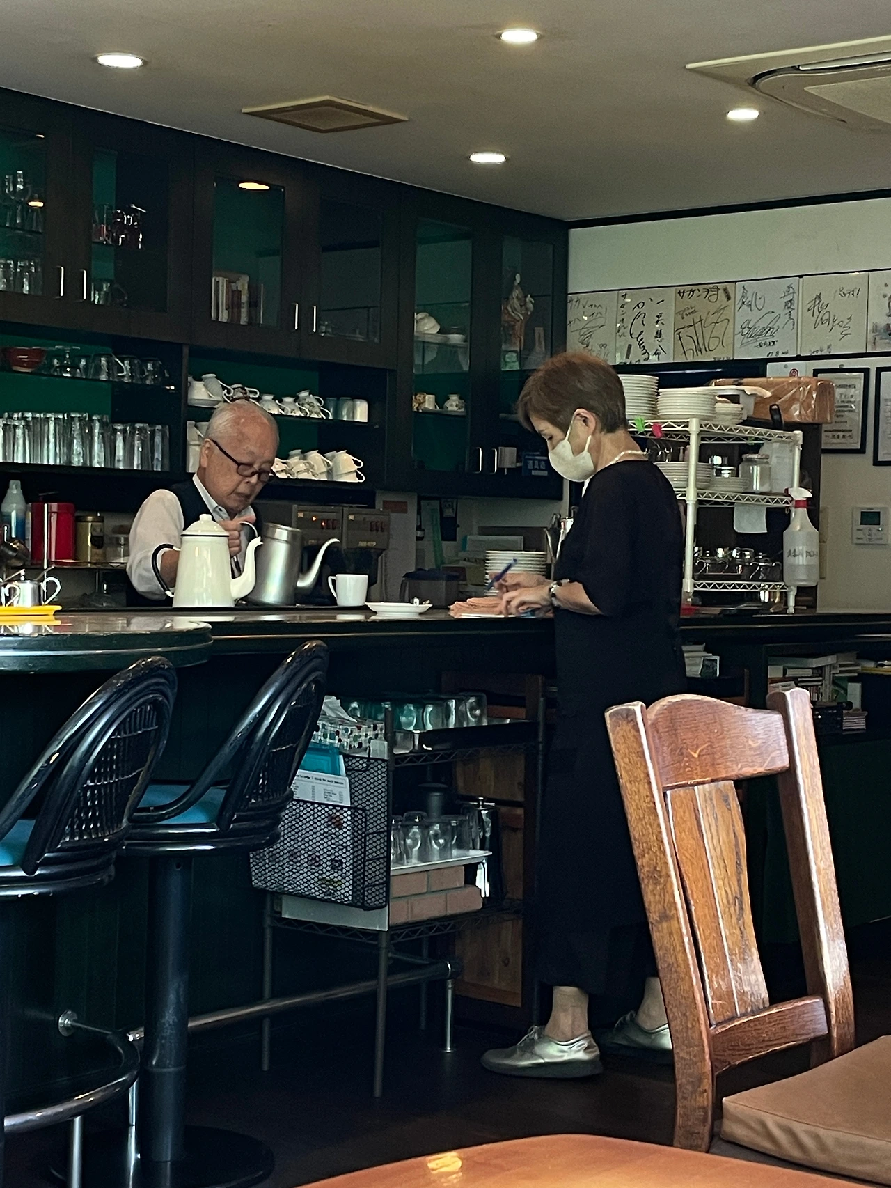 철학의 길을 호기롭게 선택한 이유는, 은각사 가는 길에 '요지야'라는 카페가 있기 때문이었다. 중정이 아름다워 녹차를 마시고 정원을 감상하는 맛이 일품이었다. 코로나의 타격을 피해 가지 못했는지 폐업을 하고 말았다. 좋은 곳을 한 군데 잃었구나, 아쉬움도 잠시. 물집 잡힌 발이 아파서 잠시라도 쉬어갈 곳이 필요했다. 꽤 많은 카페들이 문을 닫았는지 가는 길 내내 문을 연 카페를 찾는 게 쉽지 않았다. 그러다가 문을 연 작은 카페를 발견했다. 엔틱크하고 오랜 세월을 품은 탁자며 의자 그리고 찬장이 곱게 낡아가고 있었고 들어서자마자 들려오는 클래식 음악은 나를 오래전 '아름다웠던 어느 시절'로 바래다주는 듯했다. 적절하게 절도를 갖추면서도 편안하게 나를 맞이해 주는 두 분을 보고 있자니 안심이 되었다. 카페 안에는 이미 동네 분들로 보이는 어르신 두 분이 계셨다. 모두가 아는 사이인지 함께 편안하게 이야기를 나누는 모습이 정겹고 고와 보였다. 그 풍경 안에서 나도 잠시 쉴 수 있었다.