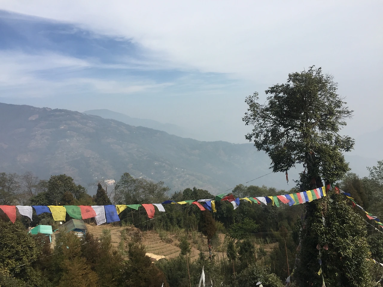 밤새 머리끝까지 이불을 당겨 올리며 찬 공기와 싸웠다. 불편한 잠자리 덕분에 7시쯤 눈이 떠졌다. 아직 온기가 남아있는 이불을 뒤척이다가 어제 봤던 새끼 강아지들이 낑낑대는 소리에 밖으로 나왔다. 누군가가 수도원에 임신한 어미 강아지를 버리고 가는 바람에 라마가 돌봐야 하는 식구였다. 사람들은 라마가 불쌍한 생명을 거두어 줄 것이라는 믿음으로 종종 동물들을 버리고 간다 했다. 희뿌연 아침 안개가 하늘 끝까지 올라와있다. 히말라야 산맥들을 한눈에 볼 수 있다는 리뷰와 달리 앞이 보이지 않았다. 차갑고 축축한 공기가 살에 닿자 소름이 돋았다. 눈에 보이는 것이라고는 수도원의 건물과 마당, 펄럭이는 오색 깃발이 전부였다. 정신을 차려보려 히말라야 산자락에서 내려온다는 물로 세수를 시작하는데 얼얼한 온도에 잠은 달아나고 없었다. 수도원에서 맞는 첫 아침이었다.