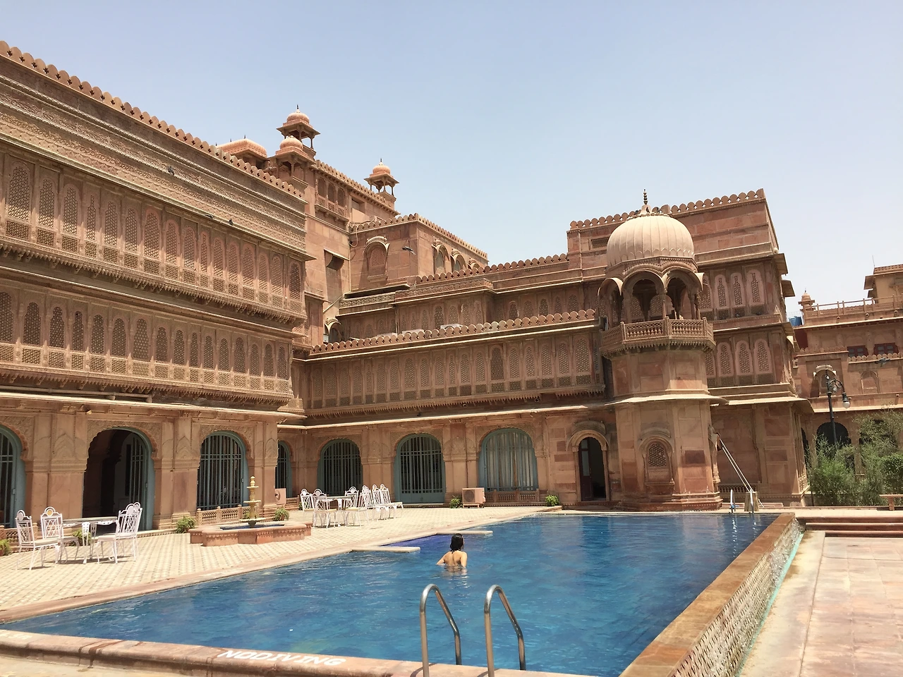 비카네르는 영국의 식민지 시절까지도 왕이 따로 있던 도시이자 향신료 무역을 하던 아랍상인의 길목이었다. 이곳도 왕궁에서 호텔로 바뀐 지 그리 오래되지 않은 햇수였다. 로열패밀리가 살던 곳은 누추한 한국 관광객도 이용할 수 있는 공간이 되었다. 내부에 식당도 있다고 하니 돈이 얼마건 간에 근사한 식사도 할 참이었다. 오늘 내내 뜨거운 사막을 다니느라 고생만 했으니 서로 잘 견뎠다고 칭찬을 해줘야 마땅했다.