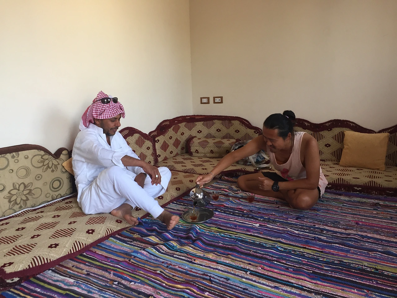 하루는 우리 집 앞마당에 카펫을 펴고 남자 여럿이 잠들어 있었다. 말 그대로 노숙이었다. 밤에 슈퍼를 가려고 문을 열었다가 이 모습을 보고 깜짝 놀랐다. 아저씨는 친척들이 가끔 놀러 와 마당에서 자는 것이라 했다. 라마단 기간이라 유독 손님이 많았다. 마당 한가운데 차를 끓이고 그 주변으로 카펫을 둥글게 깔고 모여 앉아 식사를 하고 밤에는 그대로 잠을 잤다. 이 모든 생활 모습이 이곳에선 너무나 자연스러웠다.