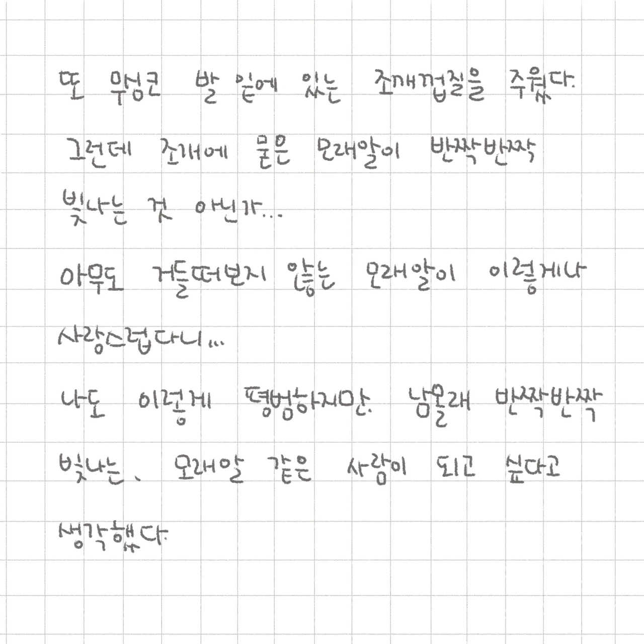 그리고 비에 촉촉이 젖어 반짝반짝 빛나는 모래알을 보게 된 것