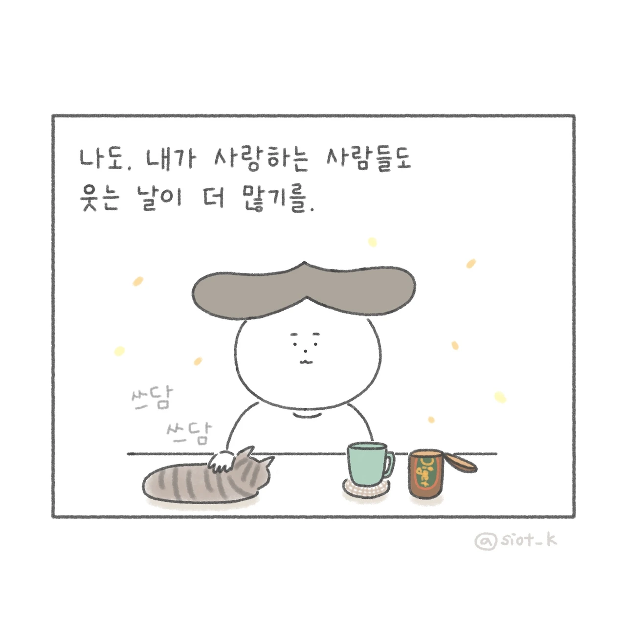 소소한 일상을 쓰고 그린다. 꼬부랑 할머니가 되어도 귀여운 만화를 만드는 게 꿈.