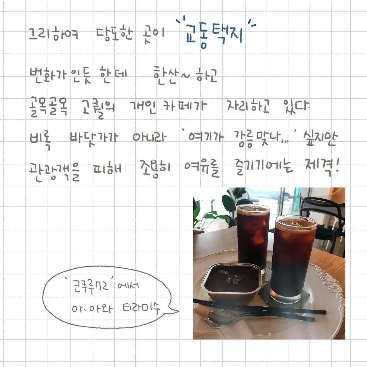어렵사리 찾은 조용한 카페에서 일기를 쓰며 1차 마음정리를 하고,