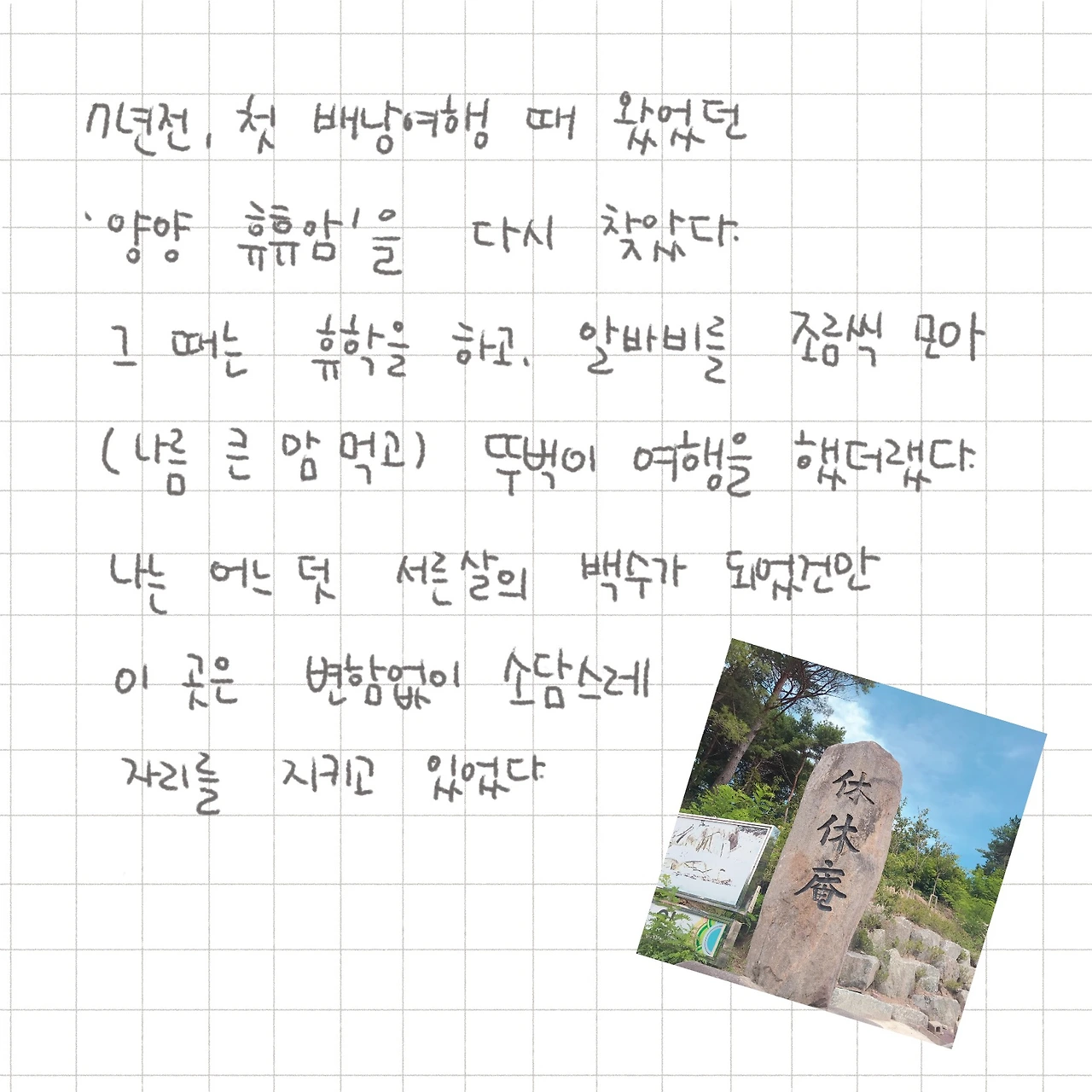 여전히 그 자리를 고즈넉히 지키고 있었으나 그 속에는 말 못할 아픔이 끓고 있었다.