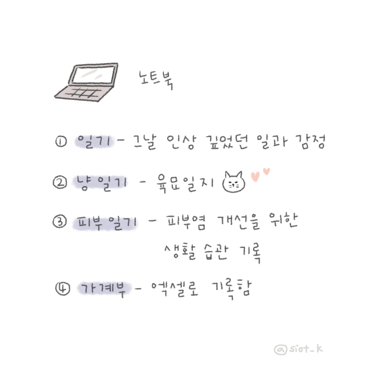 하루도 거르지 않고 쓰는 일기.