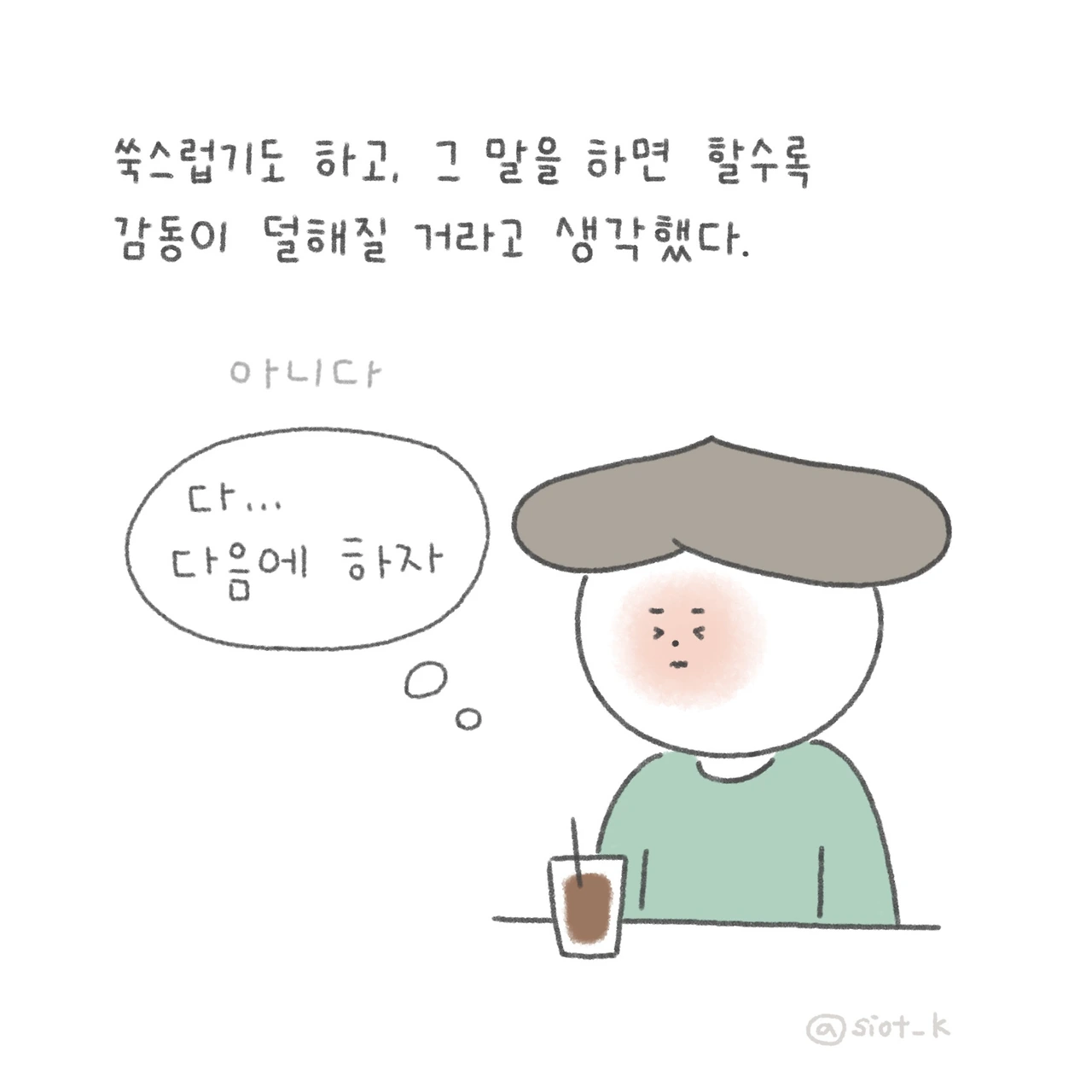 소소한 일상을 쓰고 그린다. 꼬부랑 할머니가 되어도 귀여운 만화를 만드는 게 꿈.