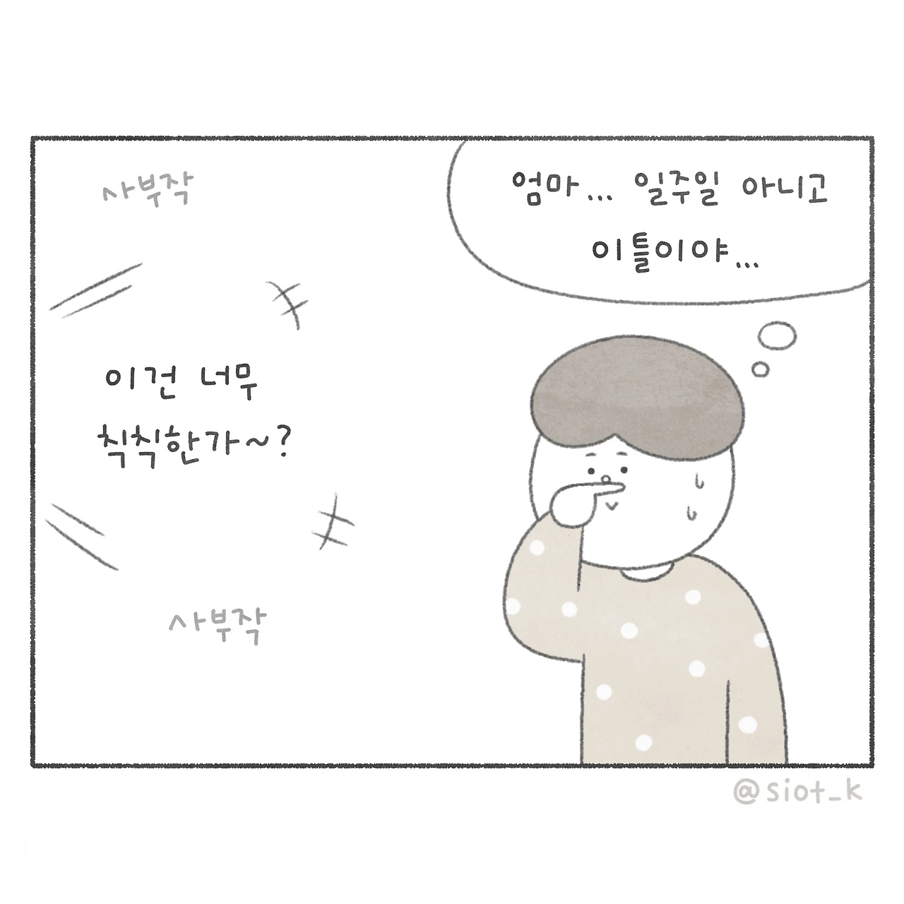 소소한 일상을 쓰고 그린다. 꼬부랑 할머니가 되어도 귀여운 만화를 만드는 게 꿈.