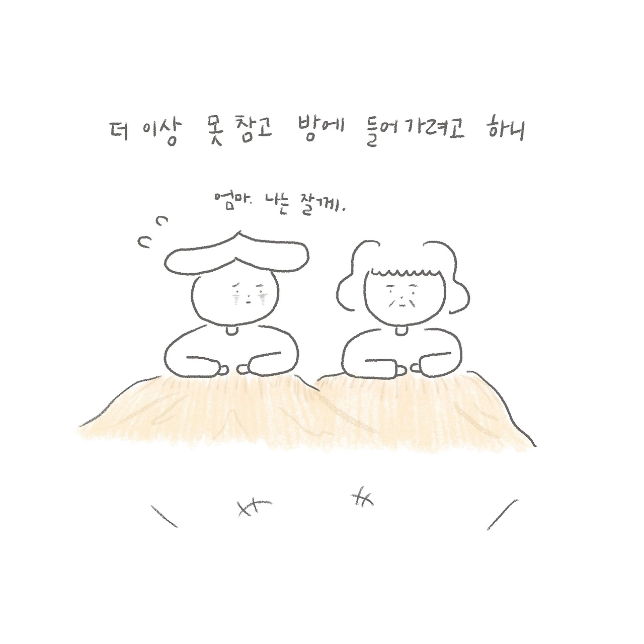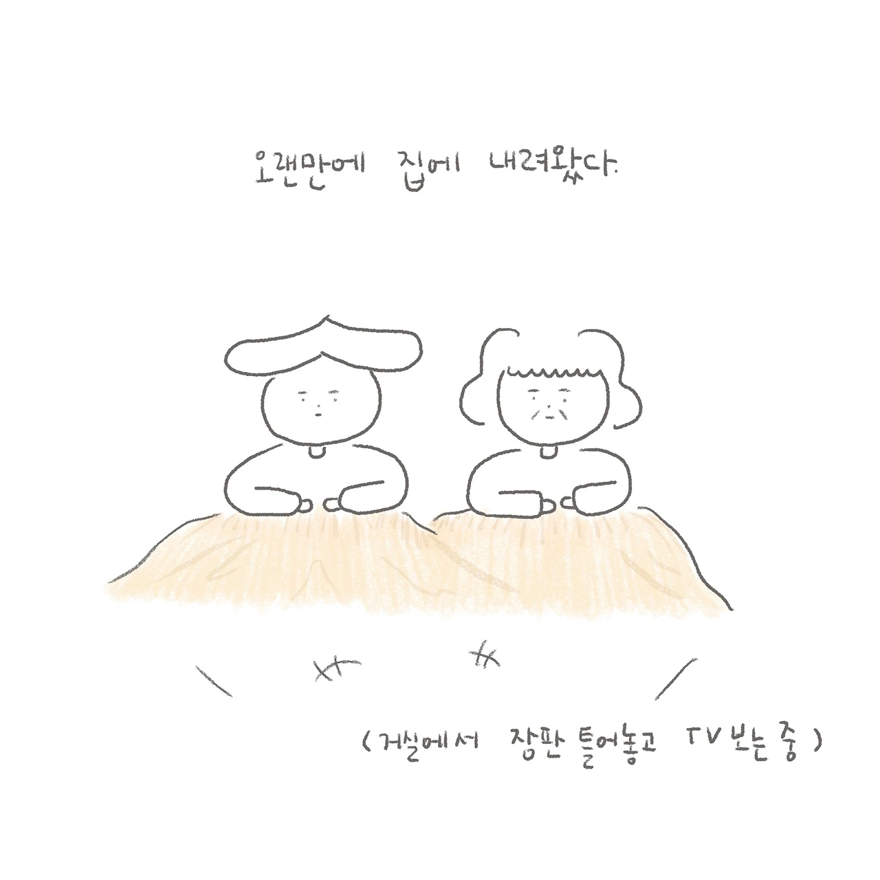 (그러나 삐져나온 손과 발이 너무 시려서 결국엔 방으로 도망갔다. 다행히 엄마 몰래!)