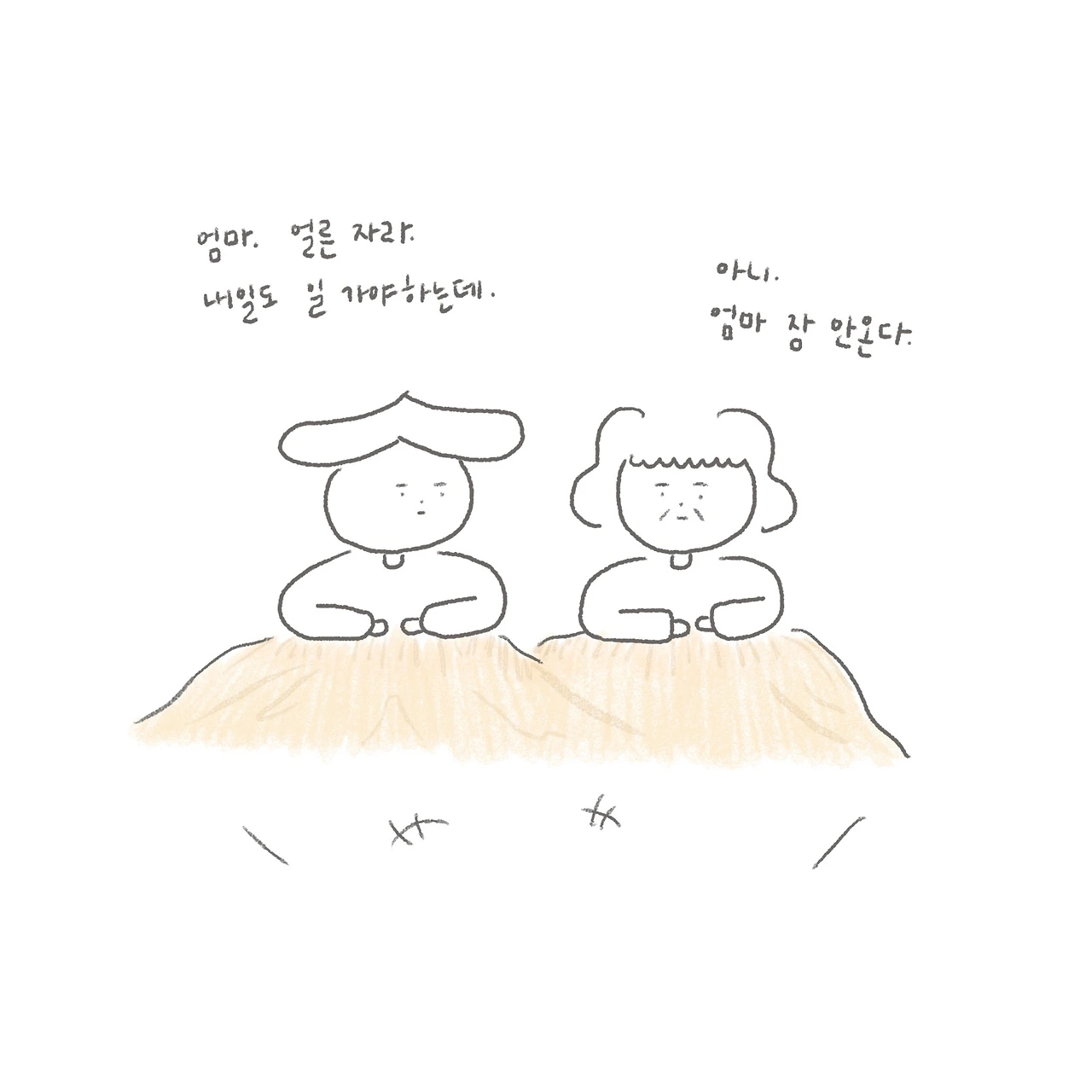 엄마는 잠깐 떨어져 자는 그 순간도 아쉬운가보다.