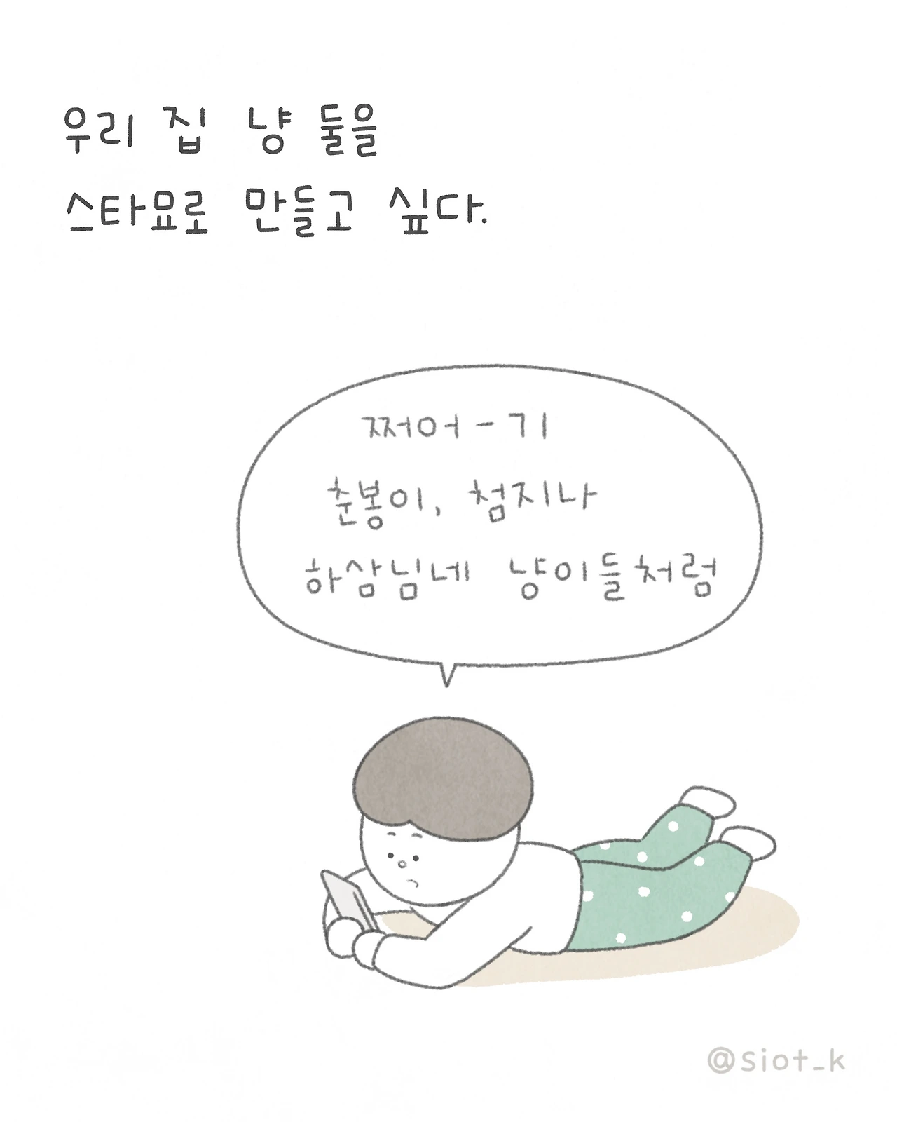 소소한 일상을 쓰고 그린다. 꼬부랑 할머니가 되어도 귀여운 만화를 만드는 게 꿈.