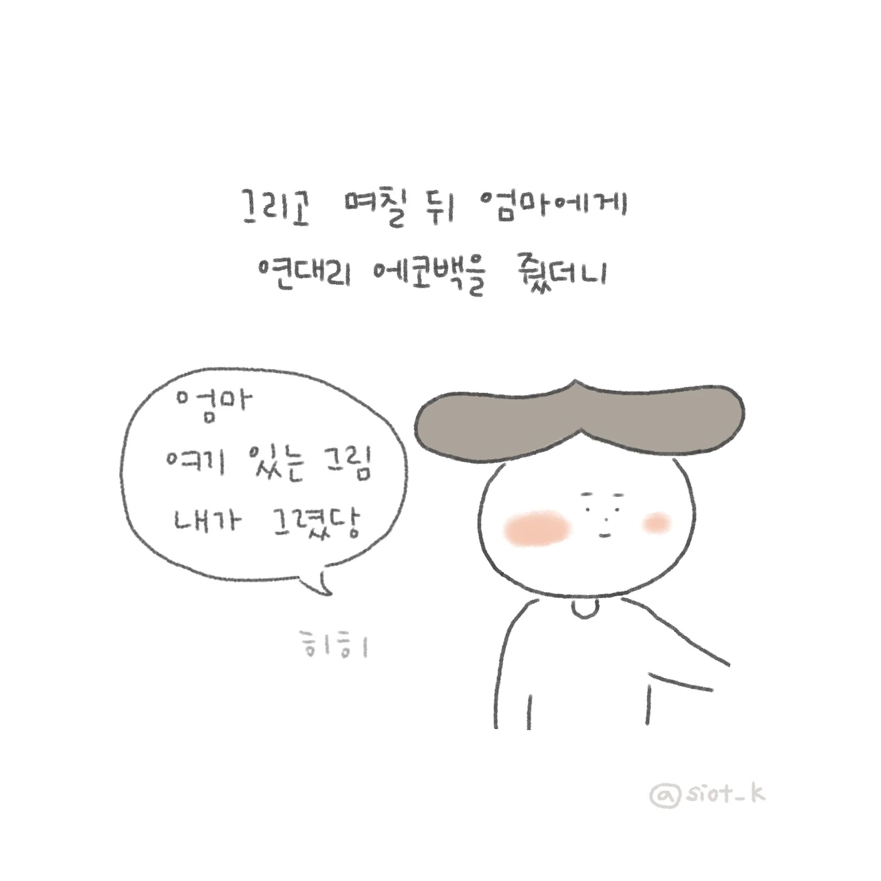 소소한 일상을 쓰고 그린다. 꼬부랑 할머니가 되어도 귀여운 만화를 만드는 게 꿈.
