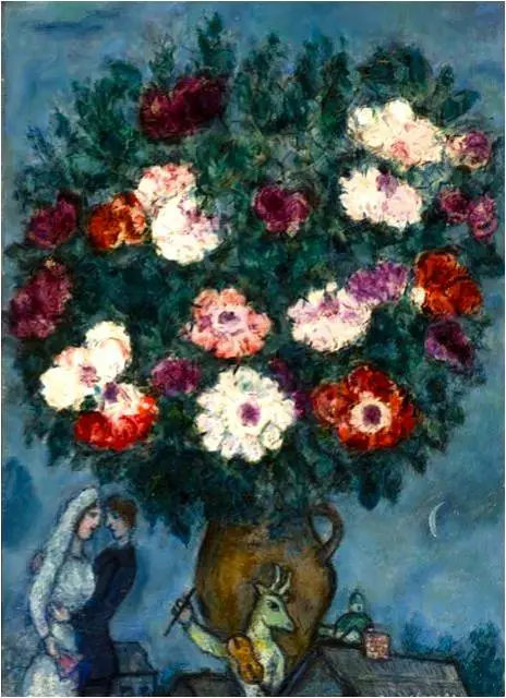 결국 그는 고국 러시아를 등지고, 1920년대 프랑스로 망명한다. 프랑스 망명 이후에야, 그는 비로소 경제적인 안정을 찾고 화가로서의 명성도 얻기 시작했다. 화가 스스로도 훗날 프랑스에 정착을 시작했던 이 시기를 인생에서 가장 행복했던 시기로 손꼽았다. 이때부터 집중적으로 그려진 작품들이 바로 '꽃과 연인' 들이다. 이 시기 작품 속의 행복한 연인들은 그가 프랑스에서 느꼈던 자유와 기쁨, 여유와 낭만, 사랑과 평화에 대한 찬미를 고스란히 담고 있다.