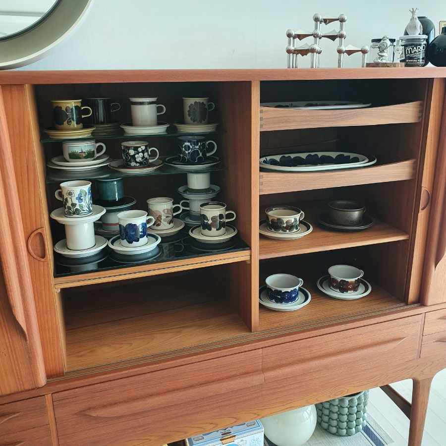 신기한 것은 매일 마시는 커피라고 하더라도, 오늘은 어떤 컵에 마시고 싶은지 기분이 달라진다는 것이다. 어떤 날은 에메랄드 바닷빛을 띄는 메리 잔에 마시기도 하고, 이상하게 어떤 날은 베이비 핑크색이 참 예쁜 코랄리 잔이 당기기도 한다. 이제는 원하는 무늬를 모두 손에 넣어서 더 이상 추가적으로 컵을 들이지는 않는다. 아라비아핀란드 컵과 접시가 가득한 이 나무 수납장은 볼 때면, 항상 부자가 된 느낌이 든다.