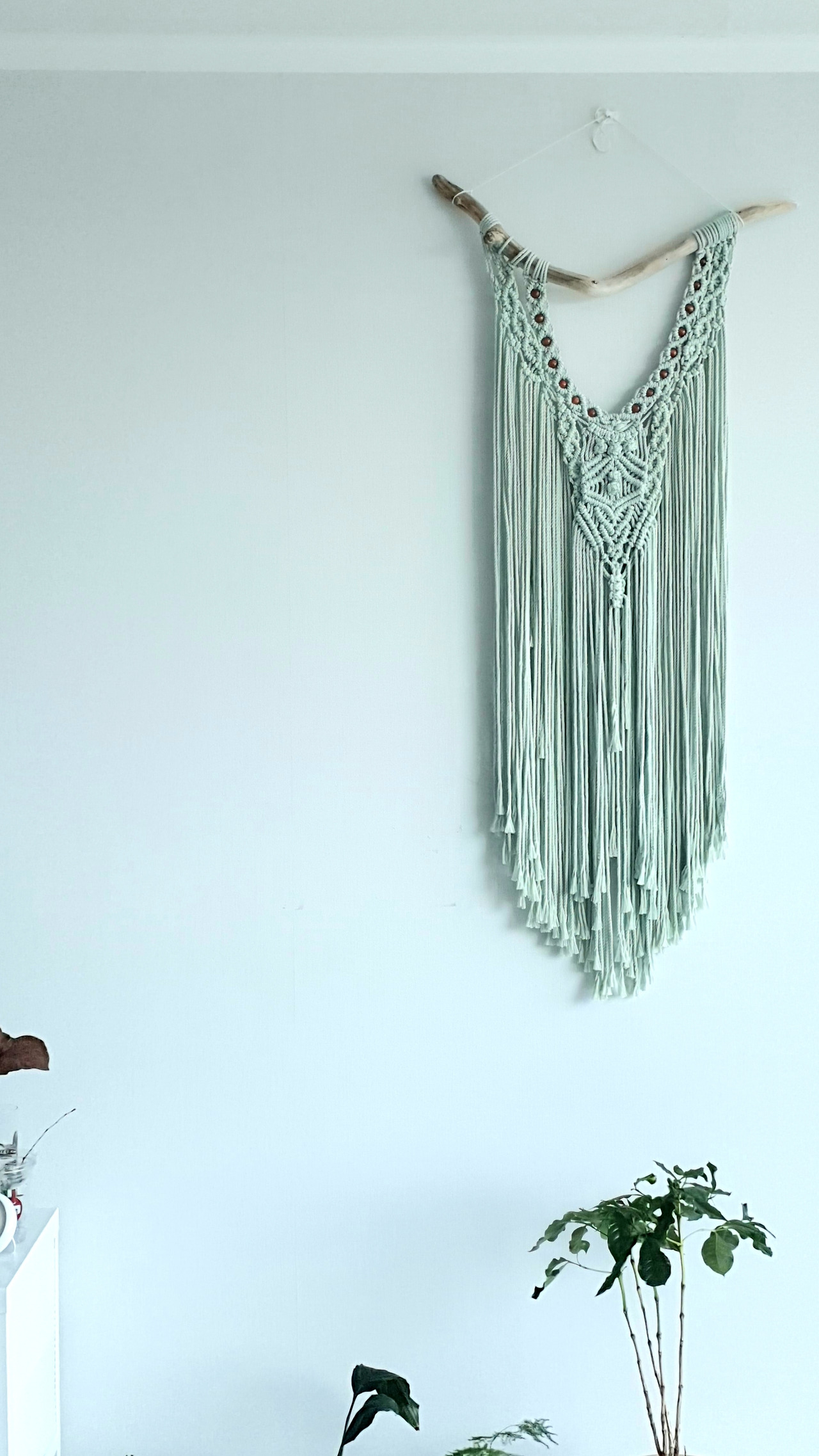나의 취미 중 하나인 마크라메도 좋은 벽장식거리가 된다. 바닷물에 오랜 시간 절여진 유목(流木) 하나를 벽에 걸고 하염없이 실을 이리저리 매듭짓고 있으면 며칠이 지나 어느덧 작품이 하나 완성된다. 가끔씩 오며 가며 작품을 보면 '저 부분의 꼬임은 어떻게 짰더라, 이 부분은 우연히 나온 모양이었지, 실의 색을 달리했으면 좋았으려나'하고 여러 가지 생각들을 하게 되는데 이게 꽤 재미가 있다. 나중에 저 정도 크기의 마크라메 작품을 시중에서 사려면 몇십만 원은 지불해야 한다는 것을 알았을 때의 재미도 쏠쏠했다. DIY의 장점 중 하나가 훨씬 저렴한 가격에 원하는 것을 획득할 수 있다는 것이다.