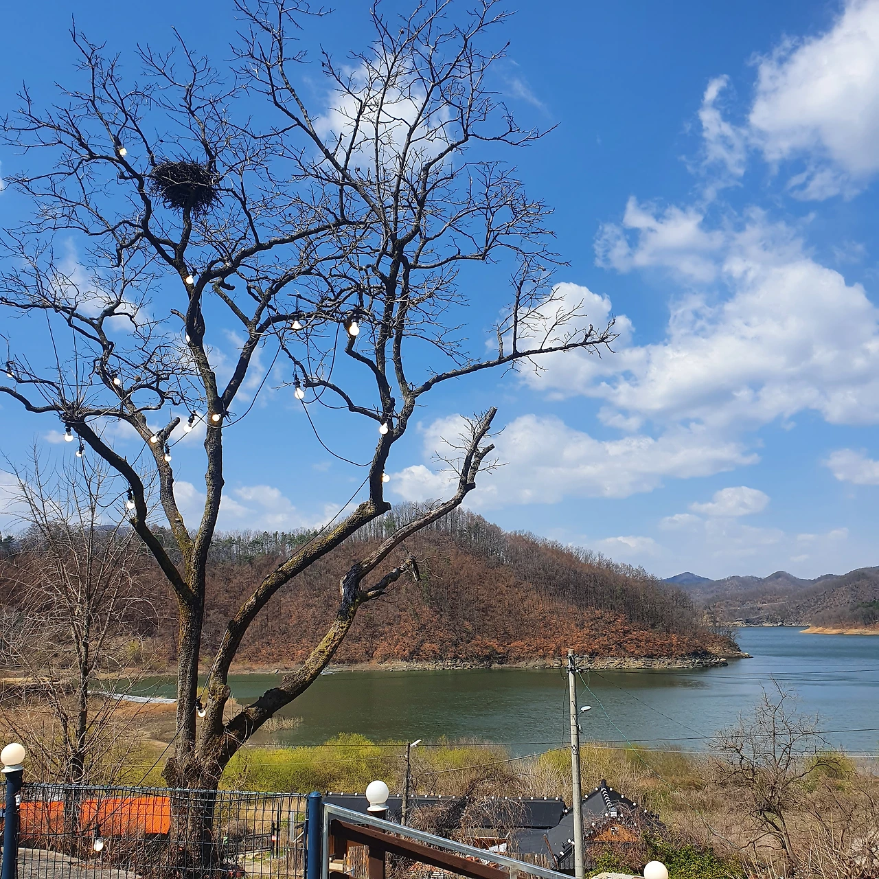 카페 건물 앞으로는 커다란 나무가 하나 서 있었다. 아직 새 잎이 돋을 시기는 아닌지라 나뭇잎 한 장 없이 텅텅 빈 가지는 새 둥지 하나를 짊어지고 있을 뿐이었다. 호수 건너편에 있는 산자락에도 초록은 보이지 않았다. 외로운 풍경에 산책을 이어나가는 것을 그만두고 어서 건물 안으로 들어갔다. 따뜻한 차 한잔을 주문하고 사람이 없는 자리를 찾아 2층으로 올라갔다.