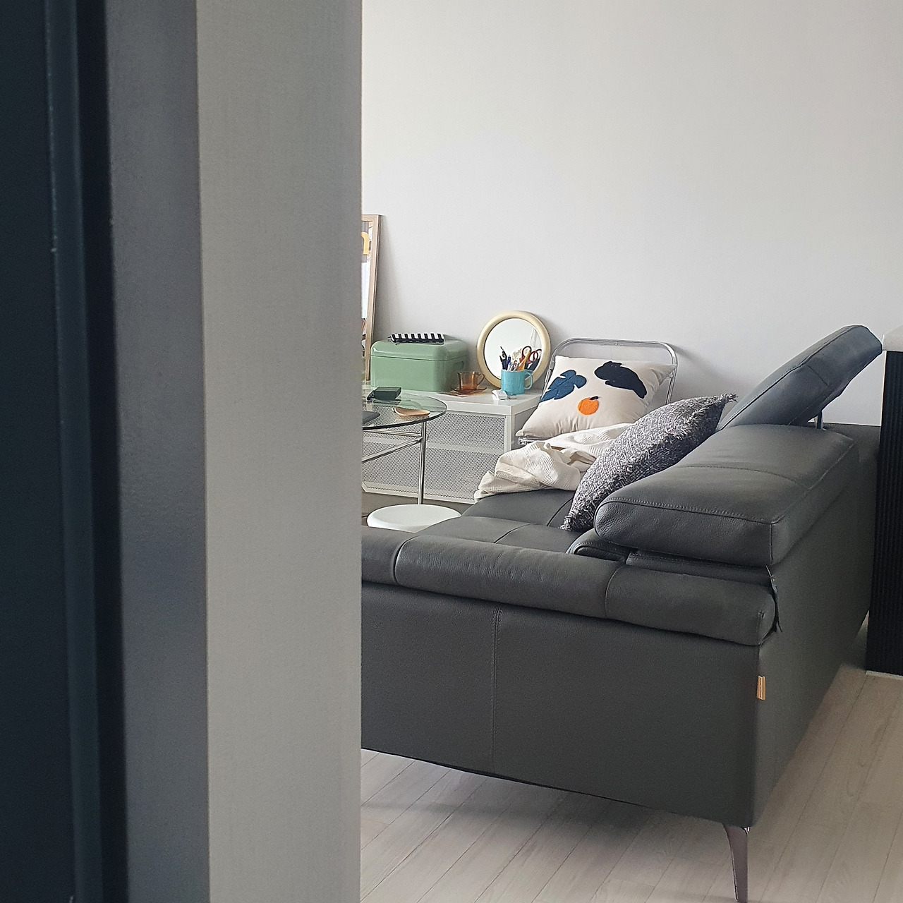 소파의 방향을 바꾸고 나서는 거실 배치를 좀 더 최적화해보기로 했다. 기존의 소파는 3인용으로 매우 컸다. 다행히 분리가 가능한 소파였기 때문에, 2인석과 1인석으로 분리해서 1인석은 창가에 가깝게 두고 2인석은 현관 쪽으로 두었다. 그리고 2인석 소파 앞으로는 낮은 테이블을 사이에 두고 의자 하나를 더 두었다. 그러자, 남편과 내가 비로소 얼굴을 맞대고 이야기를 할 수 있게 되었다. 창가 쪽에 있는 소파 1인석은 오토만과 함께 두어서, 발을 뻗고 바깥 풍경을 바라보며 편하게 머무르고 싶을 때 활용했다.