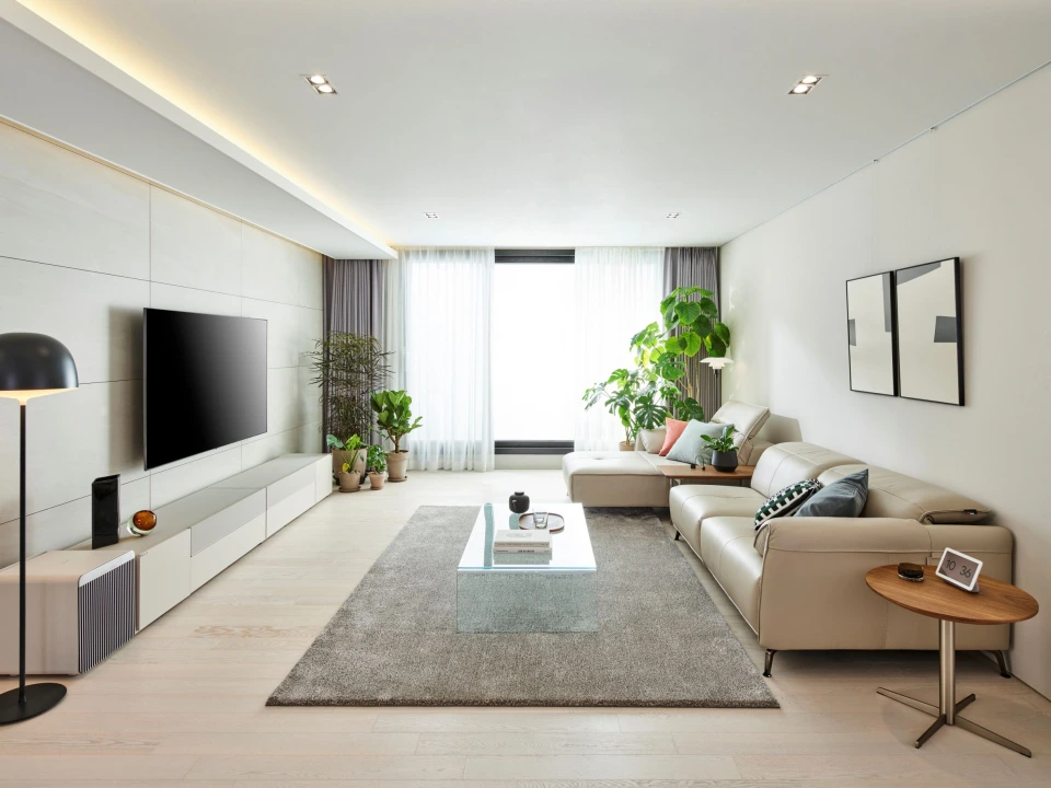 거실은 집 안의 중심이 되는 곳이고, 한국 아파트 평면도의 특성상 그 중요도가 특히 더 높다. 현관문을 열면 바로 보이는 곳이 거실이고, 모든 방에서 한 번에 통하는 중심 공간 또한 거실이다. 무엇보다, 거실은 백도화지와 같은 공간이다. 누군가에겐 다이닝룸, 다른 누군가에겐 홈트레이닝 장소, 또 다른 이에겐 서재가 될 수도 있는 것이다.
