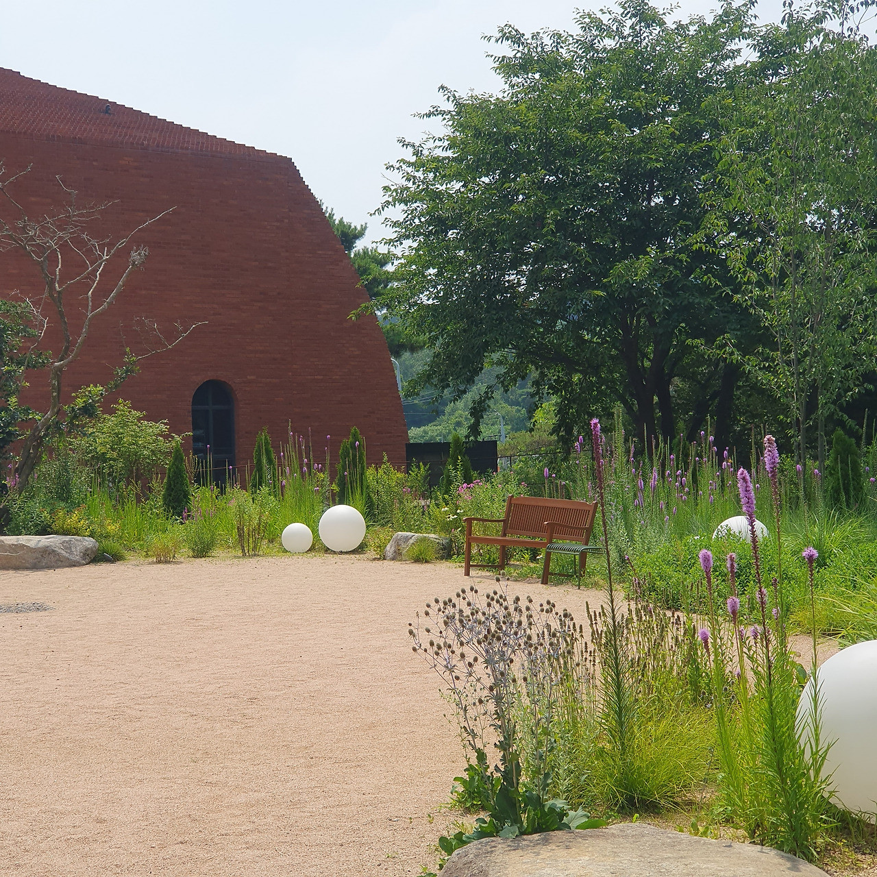 7월 초에는 김포의 한 대형 카페에서 역시나 보라색 꽃 두 개를 마주쳤다. 에린지움과 리아트리스라는 꽃이다. 둘 다 쉽사리 보기 어려운 식물인데 이렇게 또 마주하면 괜히 알던 사람을 만난 것처럼 반갑다. 엄밀히 말하면 에린지움은 보라색이라기보다는 파란색에 가깝다. 도깨비방망이처럼 포실포실한 털들과 그 중심 모두 빛바랜 오묘한 보라를 띄고 있는 게 매력적이다.