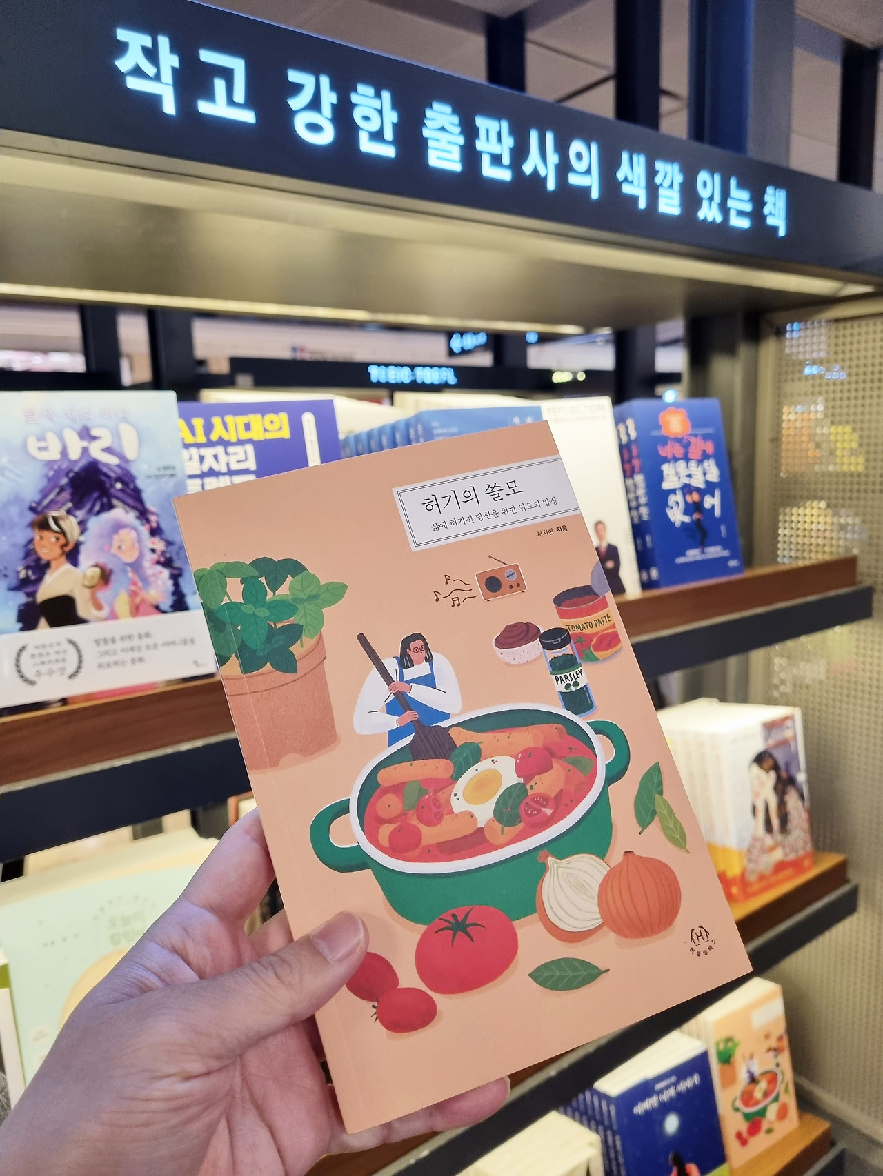 표지 빛깔이 꼭 로제 떡볶이를 연상시킨다는 말을 많이 들었습니다. 표지 일러스트조차 떡볶이 솥을 주걱으로 젓고 있는 이의 모습이지요. 책 빛깔이 매대에서도 눈에 확 띄는 게 '색깔 있는' 책인 것이 분명했습니다. 자식 같은 책을 세상에 내보내 놓고, 나름 잘 헤처 나가는 모습을 보고 나니, 비로소 할 일을 한 것만 같아 마음이 놓였습니다. 서점을 빠져나와서는 그간 물심양면으로 출판을 뒷바라지 해준 옆지기와 커피와 팥빵을 즐겁게 나누어 먹었습니다.