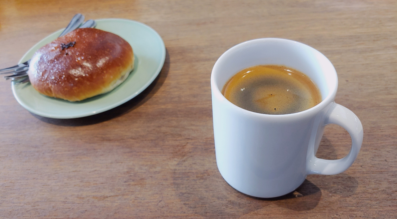 오프라인 서점에서 책을 만난 날, 옆지기와 커피와 빵을 나누며