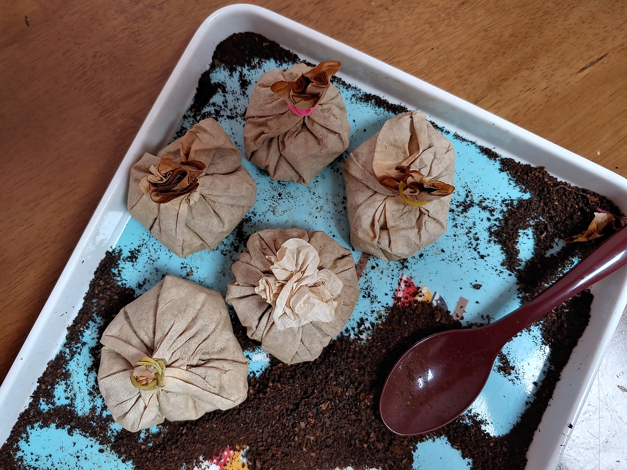 고슬고슬 잘 마른 커피 찌끼에서 담뱃재 냄새가 풍겼다. 며칠 전 집에서 커피를 내리고 나서 쟁반에 펼쳐 말린 고운 커피 가루다. 시트러스(citrus) 향이 빠져나간 황갈색 잔재물엔 씁쓸한 탄내만 남았다. 기억 속 냄새의 근원을 따라 고운 커피 찌끼를 쓸어 본다. 그리고 거기서 아버지를 보았다. 하염없는 생각에 잠겨 담배를 이어 태우는 아버지의 뒷모습을.