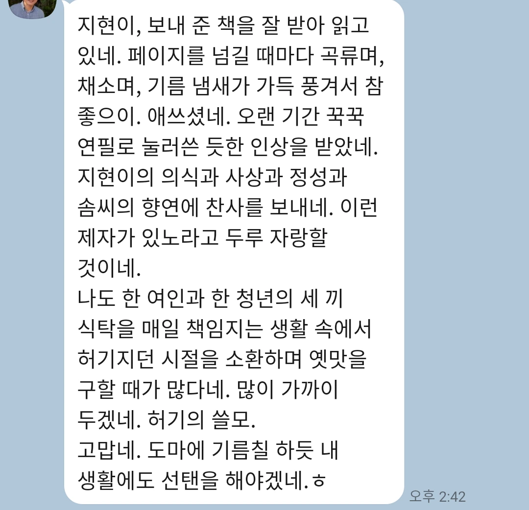이 기쁜 소식을 가장 먼저 가족들에게 알렸다. 진심으로 기뻐해 줄 지인들에게도. 연을 이어오던 고등학교 은사님들께도 책 출간 소식을 전했다. 휴대폰 메시지 창에 온라인 서점 링크만 걸고 마는 것이 석연찮아 손수 책 한 권씩을 보내드렸다. 전업주부로 살면서 괜스레 위축된 마음에 한동안 연락을 못 드렸는데, 이 한 권의 책이 다시금 연결고리가 되어준 것만 같아 흐뭇했다.