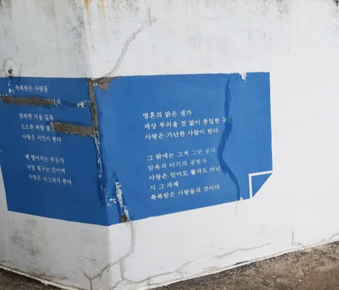 발길을 돌리려는데 길 한편 담벼락에 작가의 시 <축복받은 사람들>이 새겨져 있는 게 눈에 띄었다. ‘사랑은 언어도 활자도 아닌/시 그 자체/ 축복받은 사람들의 것이다’라는 대목을 읊조리고 또 읊조렸다. 통영을 삶의 터전 삼아 살아가는 동안 생명 있는 모든 것을 사랑했던 작가의 숨결이 가까이서 느껴졌다.