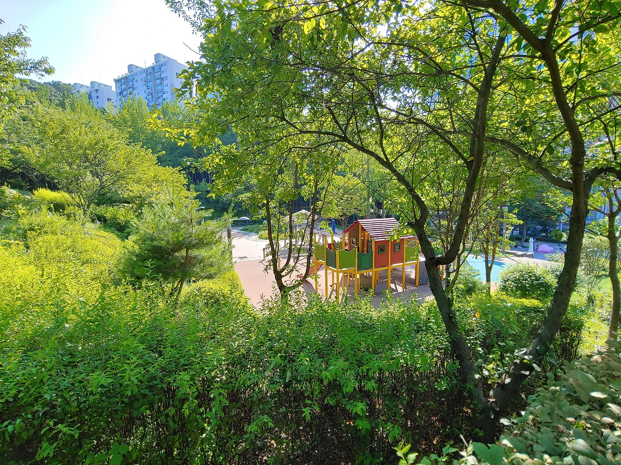 산속에만 폭 파묻혀 살았던 건 아니다. 아이가 놀이터를 원하는 날도 있었다. 그런 날은 아침부터 마음의 채비를 단단히 했다. 네 살 아이의 손을 잡고 두 살 어린 딸을 아기띠로 안은 채 살얼음판 같은 경사길을 내려가야 했기 때문이다. 5515 버스가 종점으로 드나드는 현대아파트, 바로 그 인근에 자리 잡은 샘말공원(서울 관악구 대학 20길 9)이 우리 집에서 가장 가까운 놀이터였다.