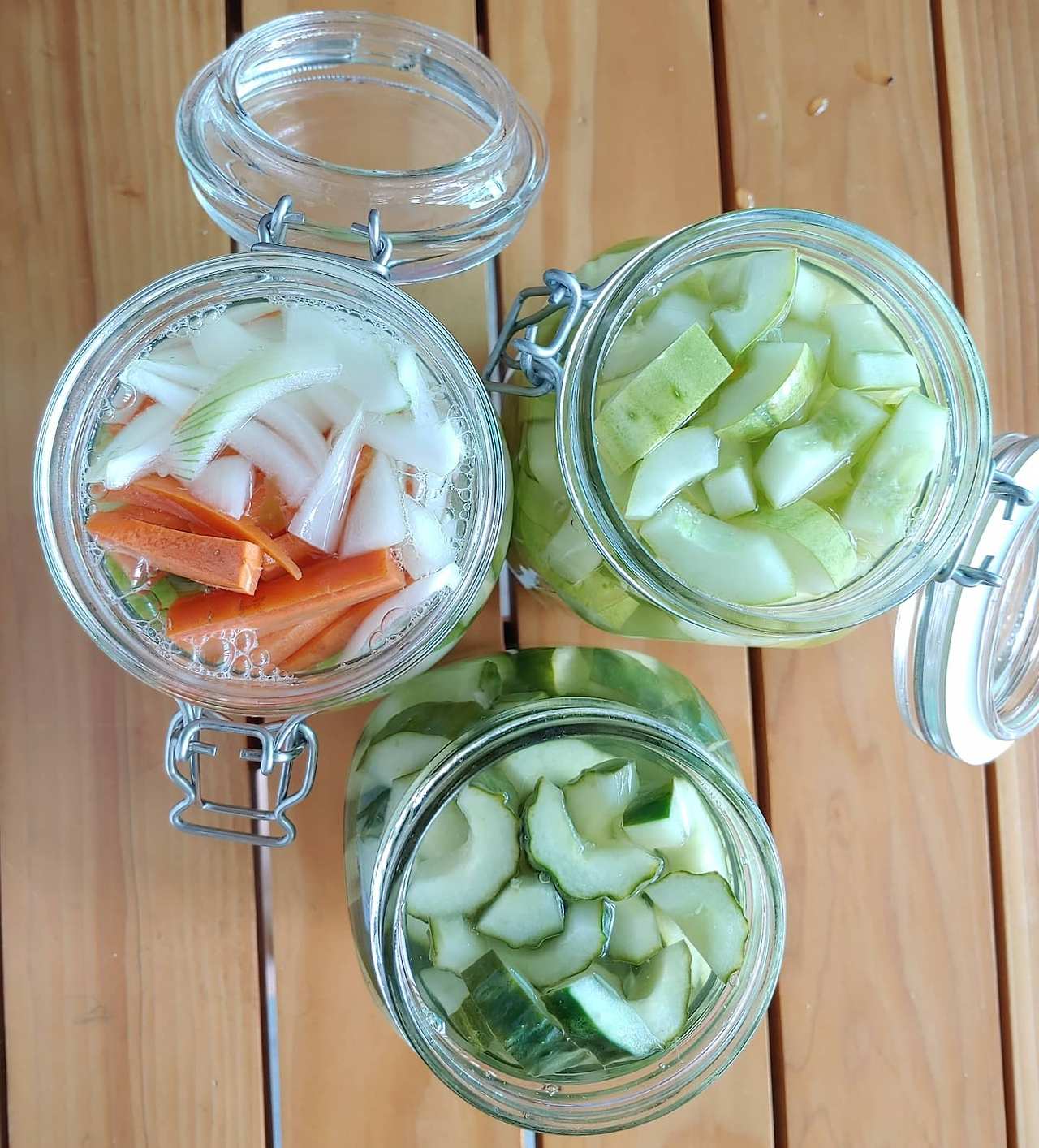 냉장고 속 각종 채소로 피클을 담갔다