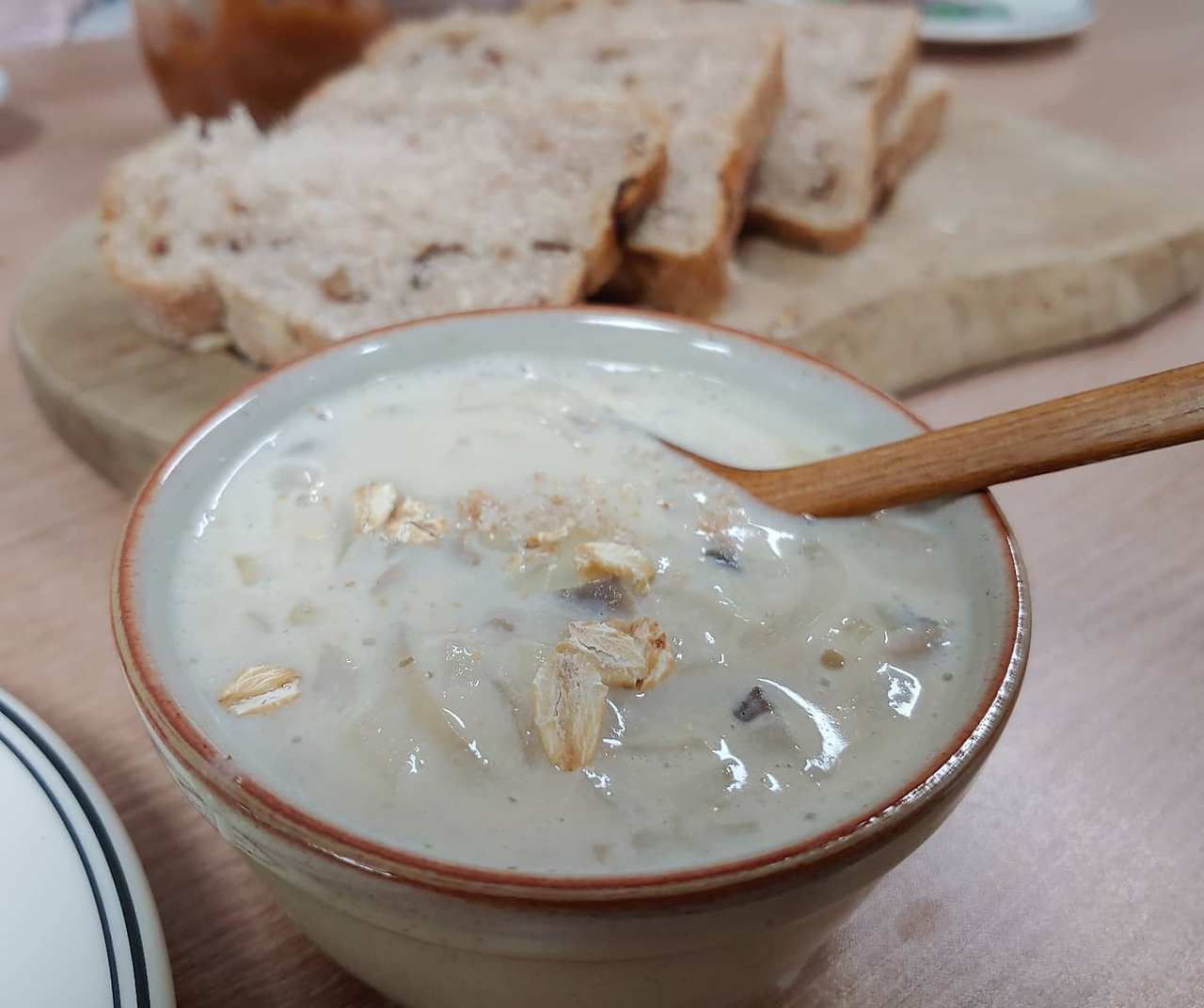 양송이스프에 호밀빵을 곁들이는 아침이 새롭다