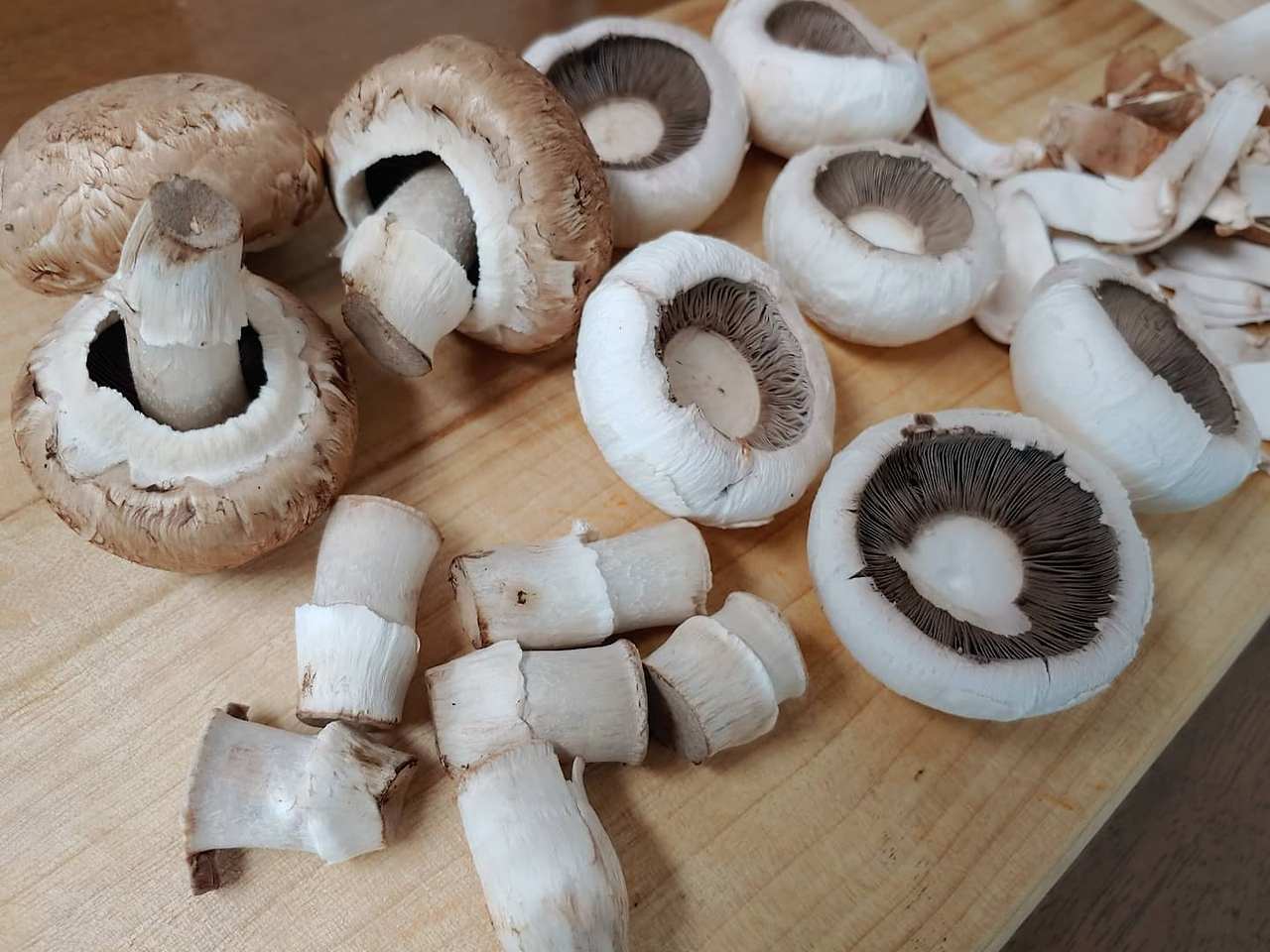양송이버섯은 손질이 쉽고 재미난 구석이 있어서 종종 아이들과 함께 다룬다. 시범을 보여주면 아이들도 곧잘 따라 한다. 알이 굵고 반듯한 버섯은 심지가 깔끔하게 똑 떨어지는데 반해 모양이 실하지 못한 놈은 종종 그렇지 못하다.