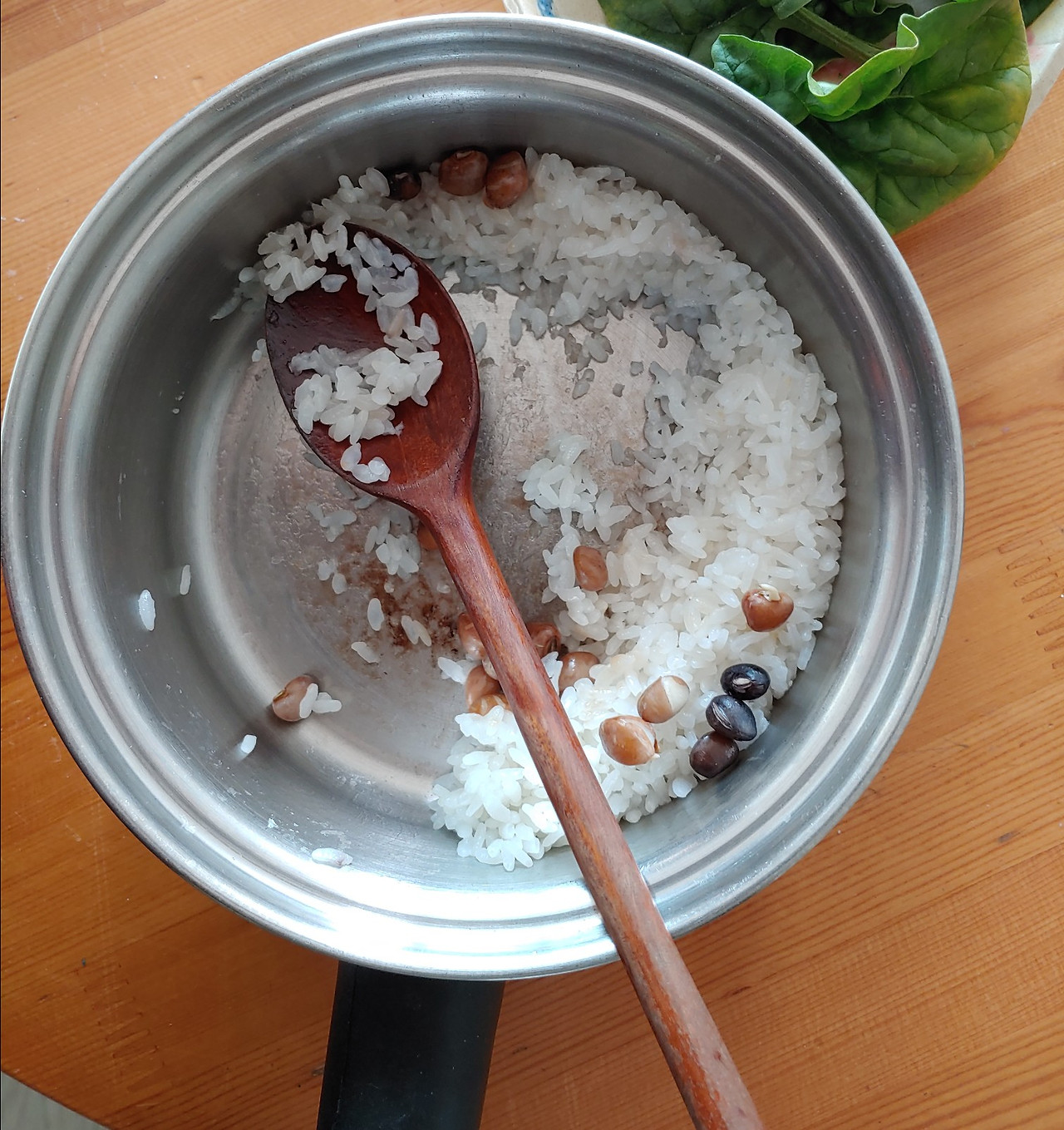 냄비밥을 지을 땐 밥 위에 무얼 올릴까 고민한다. 밥에 콩을 올리고 싶을 땐 찬물에 콩을 미리 충분히 불려둔다. 봄에는 강남콩, 초여름엔 호랑이콩, 초가을엔 풋팥, 가을이 깊어지면 서리태콩과 돈부콩을 올린다. 무엇이 됐든 햇콩은 불리지 않고 그대로 넣어도 무방하다. 아주 가끔은 보랏빛 물로 밥을 안친다. 콩나물을 기르려고 지눈이 콩을 불린 날이다. 콩 불린 물을 밥물 삼고 콩 한 줌 얹으면 말그대로 색다른 밥이 지어지면서 기분마저 산뜻해진다.