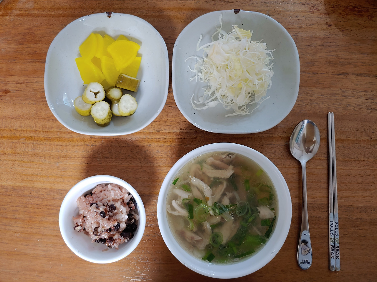 '늦어 죽겠는데 엄만 하필 이렇게 뜨겁고 매운 국을 차려준담.'