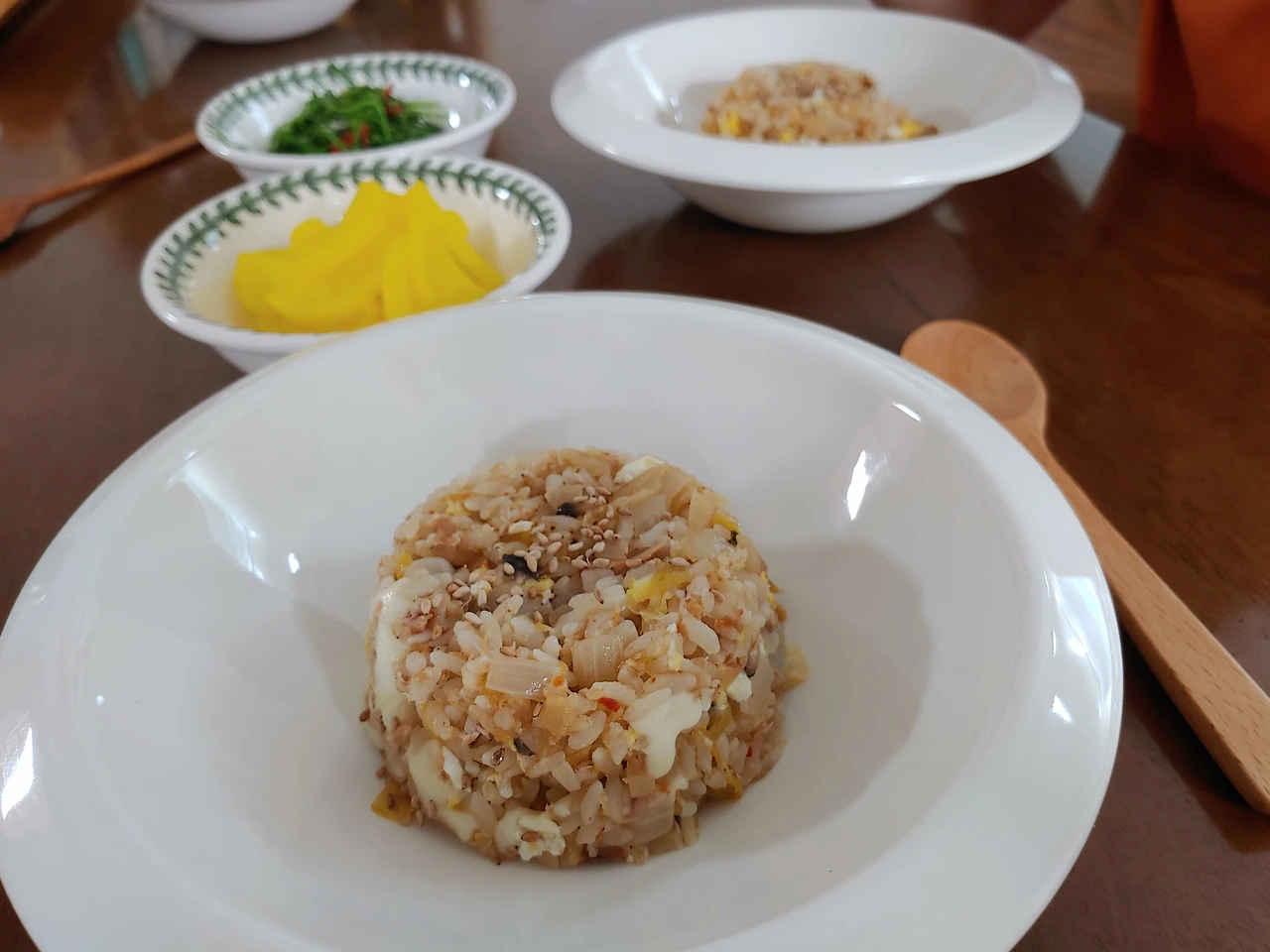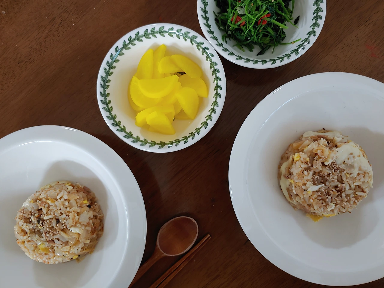또 하나의 맛의 비결은 계란을 다루는 방식에 있었다. 그는 계란을 두 번 풀었다. 한 번은 볶음밥에 섞을 용도로 두 개의 계란을 스크램블 했고 또 한 번은 다 된 볶음밥 위에 계란 한 알을 톡 터드려 전체적으로 막을 입혀주는 식이었다. 그래서 그런가, 볶음밥은 김치 맛이 도드라져 너무 자극적이다거나 짜지 않았다. 순하면서도 적당히 매콤한 중도의 맛, 매운맛에 약한 내 입에는 그야말로 맞춤이었다.