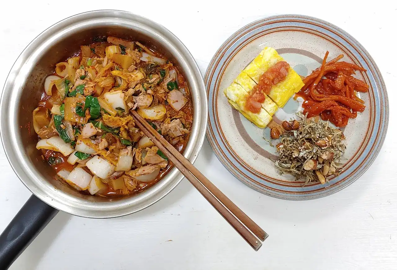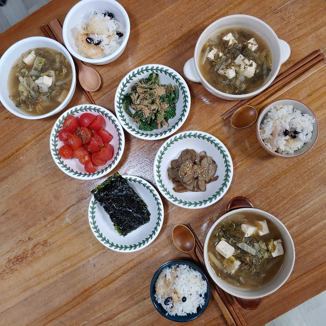 묵은지볶음과 밑반찬으로 한 끼 밥상을 차린 날