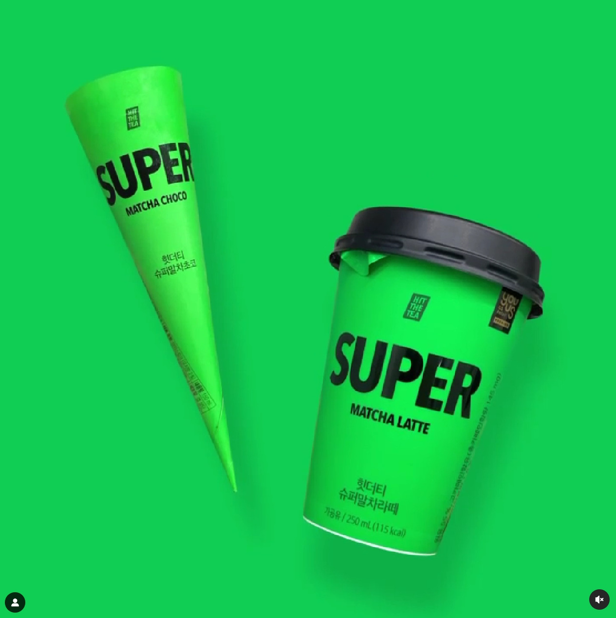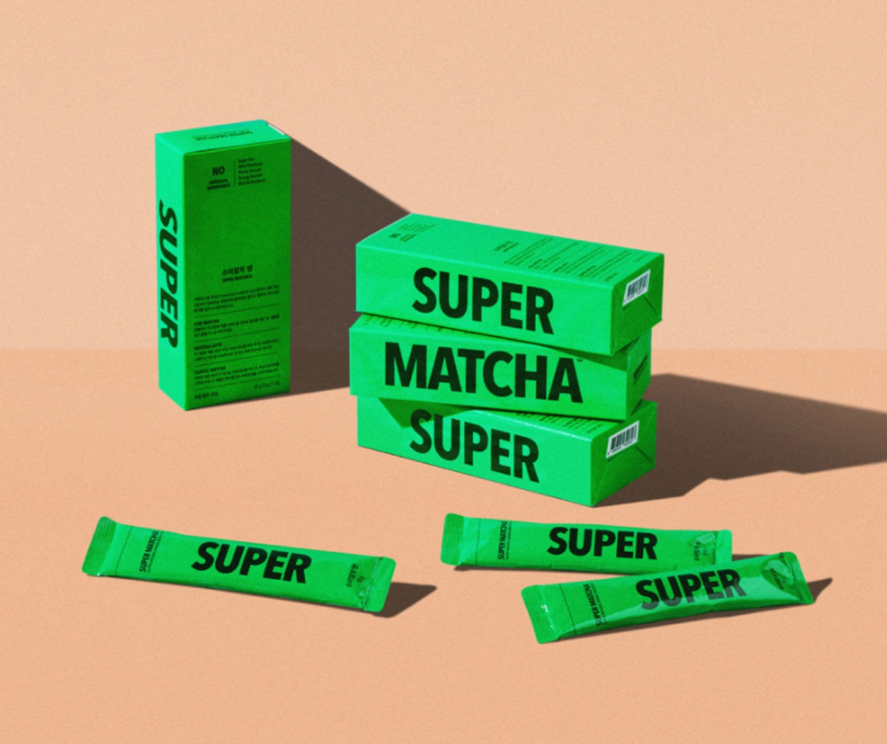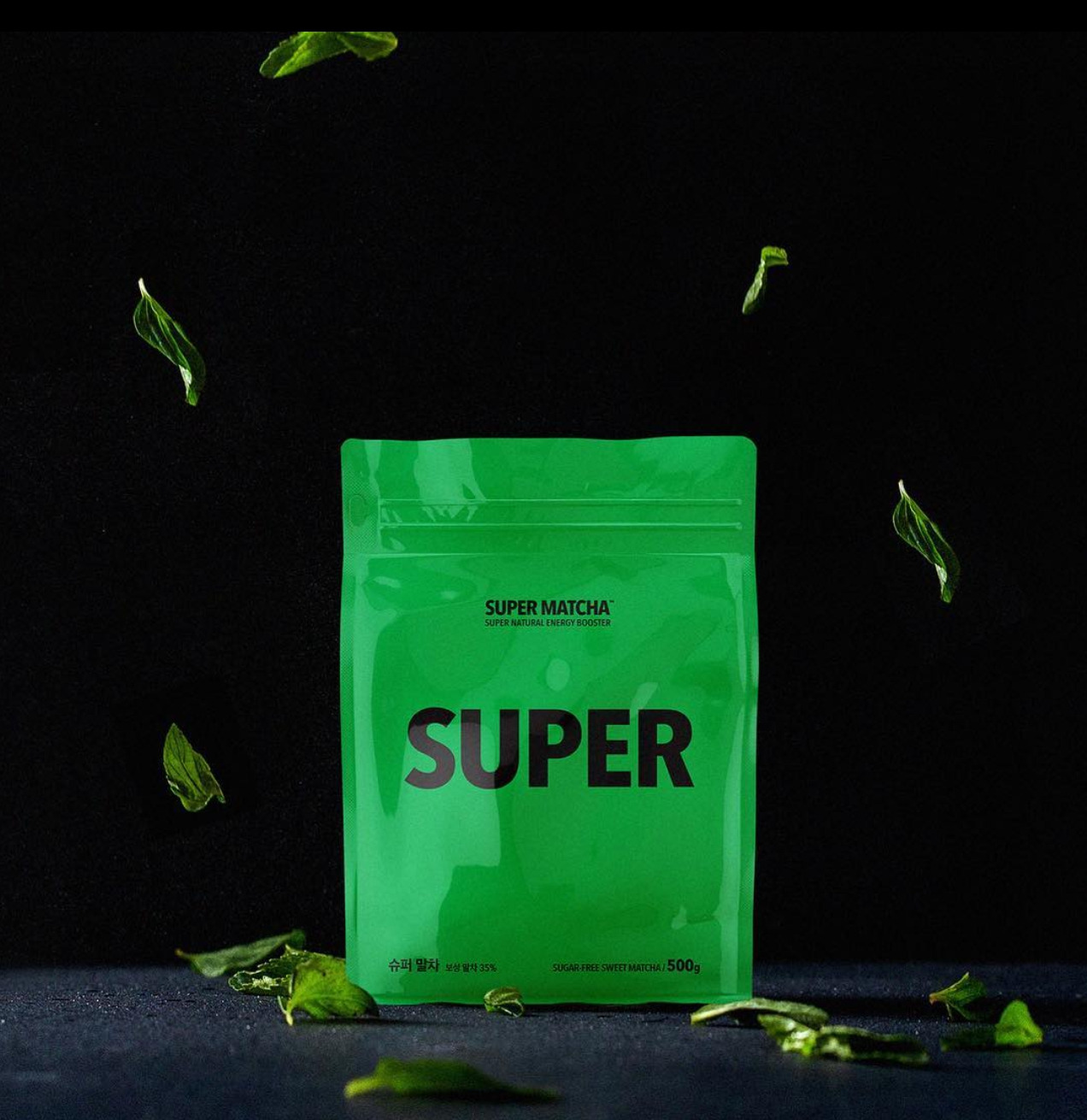 먼저 슈퍼말차의 브랜드명을 살펴보자. '슈퍼'라는 단어 자체는 에너제틱한 느낌을 풍긴다. 슈퍼 푸드의 연상까지도 가능하다. 그리고 슈퍼말차의 볼드한 검은색 타이포는 잔잔한 느낌의 기성 차 브랜드의 타이포보다 훨씬 강렬했다.