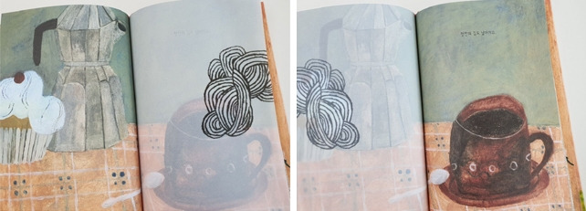 살짝 비치는 찻잔에서 몽글 피어나는 온기가 따뜻하다 싶더니, 다음 장면에선 따뜻한 김이 사라진 찻잔이 덩그러니 나를 올려다보며 '이것 봐 한때의 뜨거움이 영원하진 않아. 그렇지?' 말을 걸어온다. 뜨거움이 사라져 다행인 걸까, 다 식어버려 아쉬운 걸까. 작가가 살짝 비틀어 유도하는 '시선의 전환'에, 독자를 페이지 넘김의 행위로 직접 참여시키는 매력적인 그림책이다.