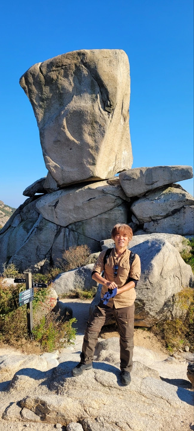 ◼승가사에서 가파른 돌길을 오르다 삼각 교차로가 나온다. 왼쪽으로 가면 비봉이고 오른쪽으로 가면 사모바위다. 가까운 사모바위부터 들르고 비봉으로 가는게 낫다. 비봉에서 사모바위로 가려면 오던 길을 한참 거슬러 가야 한다. 비봉 정상에서 산 능선따라 시선을 옮기면 북한산 준봉들을 등에 업고 우뚝 솟은 사모바위가 보인다.