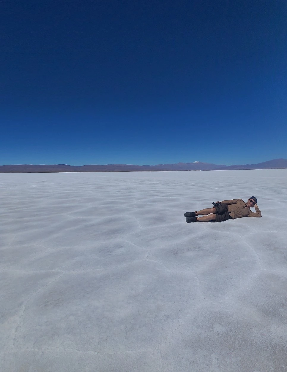 선글라스 없이는 눈 뜨기도 힘든 소금 사막을 정처 없이 걸었다. 먼 옛날 바다가 융기해 생긴 곳이 소금사막이다. 비가 오면 소금이 올라오고 마르면 갖가지 다각형이 거북이 등껍질처럼 이어진 하얀 세상이 펼쳐진다. 이곳에 다시 비가 내려 물이 잔잔하게 고이면 하늘을 반사하는 거대한 거울이 생긴다. 볼리비아 우유니에 가기 전 전지훈련 삼아 왔는데 이곳 자체로 생경해 넋을 잃고 걸어 다녔다. 가이드가 살리나스 그란데에서 그처럼 걸어 다니는 거 보면 우유니에서도 별 문제없을 거라고 단언했다. 다행이다. 지금 가장 무서운 건 고산병이다.