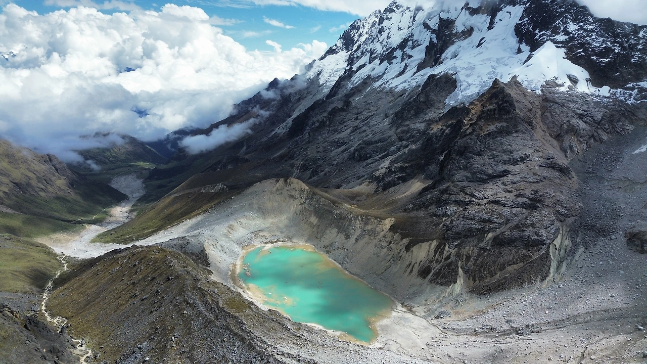악전고투 끝에 우만타이 호수에 올랐다. 파타고니아 피츠로이에 비할바는 못되지만 우만타이 설산 앞에 청담색 빙하호가 있어 나름 멋이 있었다. 아밋이 파라과이에서 700달러 주고 샀다는 드론을 날려 우만타이 호수를 공중 촬영했다. 찍은 사진을 보고 우와~라는 감탄사가 저절로 나왔다. 비색으로 빛나는 우만타이 호수를 바라보며 그 옆 고지에 오르니 산으로 이어지는 능선길을 걷고 싶은 충동이 생겼다. 고산병 증세가 여전한 상태에서는 욕심일 뿐이었다. 서둘러 내려와 우만타이 호수의 비취색에 빠져들었다.