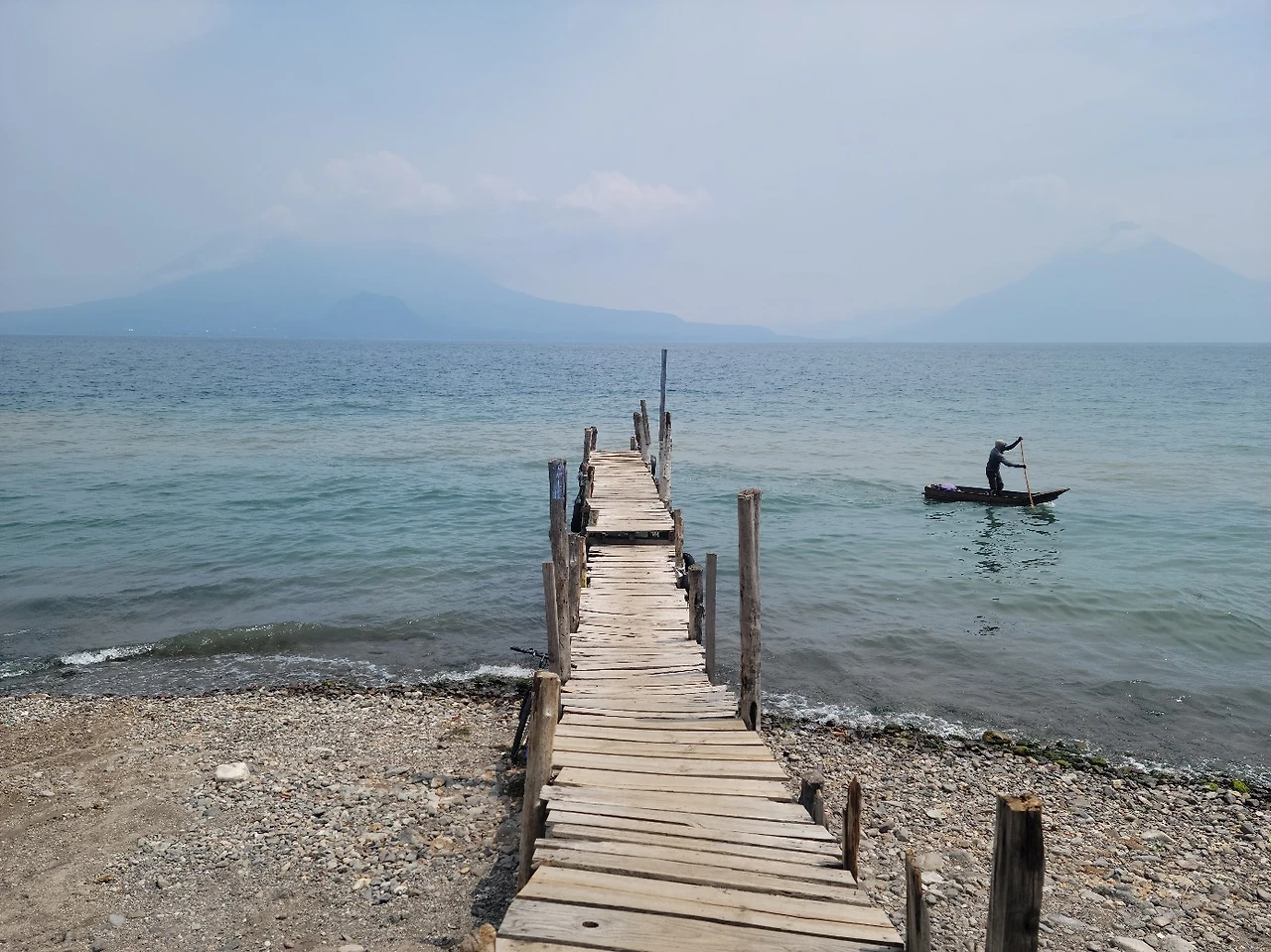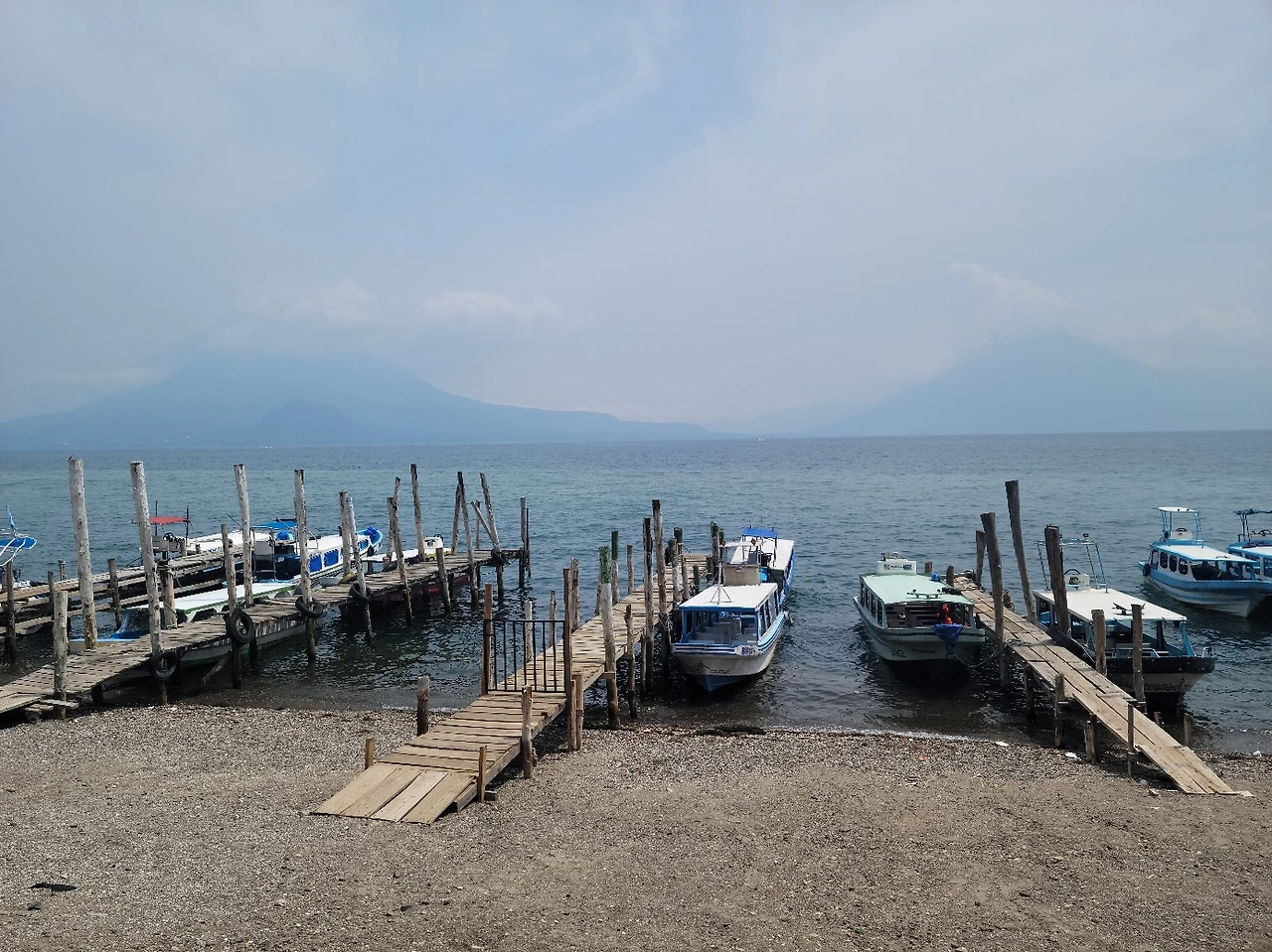 안티과에서 콜렉티보를 타고 3시간가량 달려 아티틀란 호수에 왔다. 체게바라가 혁명을 포기하고 눌러 앉고 싶다고 할 정도로 아름다운 호수라고 하니 보고 싶었다. 아티틀란는 해발 1562m에 있다. 화산 폭발로 형성된 칼데라 호수다. 중심지라할 파나하텔에서 호수 너머로 수호신처럼 버티고 선 2개 산을 볼 수 있는데 왼쪽이 아티틀란 화산이고 오른쪽이 톨리만 화산이다. 그 화산을 포함해 호수 주위를 병풍으로 둘러싼 산과 봉우리 아래로 최대 수심 340m, 평균 수심 220m 호수가 자리한다. 총면적은 130 평방km로 여의도 면적의 44배나 된다.
