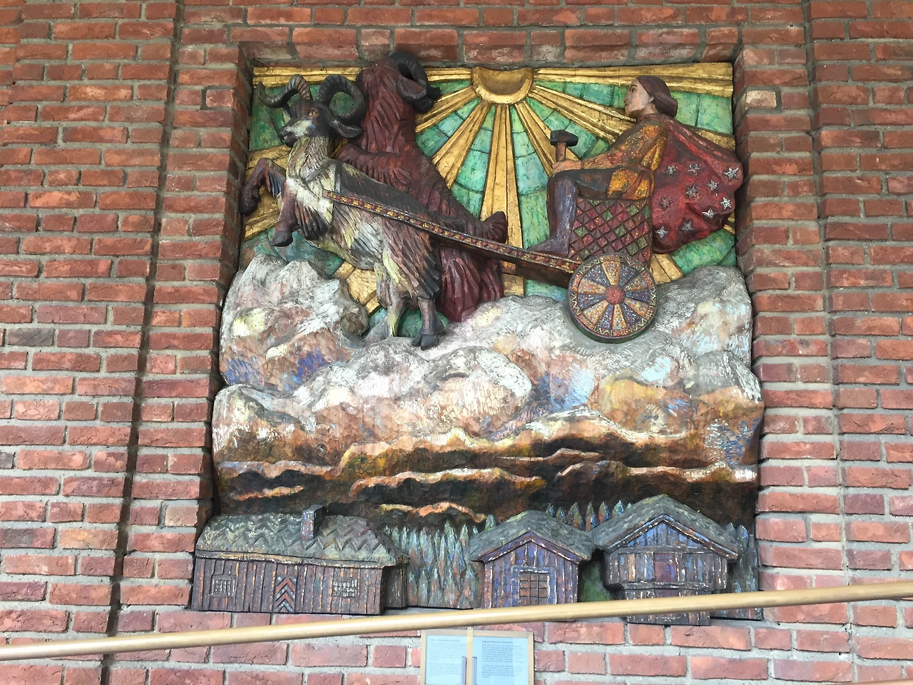 노르웨이 오슬로에서는 북유럽 신화의 흔적을 곳곳에서 찾아볼 수 있어 기뻤다. 피오르 항구에 접한 오슬로 시청사 양쪽 회랑 벽에는 북유럽 신화의 에피소드들이 새겨진 목조 판화 작품 16개가 줄지어 붙어있다. 노르웨이 조각가 다그핀 베렌스코이드의 작품이다. 시청사 그랜드홀 한쪽 벽을 차지하고 있는 이그드라실 석조 부조도 그의 작품이다. 판화 작품마다 노르웨이어와 영어로 신화에 대한 설명이 깨알같이 적혀 있어 북유럽 신화 문외한도 작품에 담긴 스토리를 이해할 수 있었다.