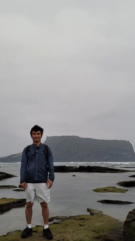 해안은 성산항까지 이어졌다. 성산항 근처에서 길을 잃었다. 나처럼 길을 잃고 돌아오고 있는 여행객 2명을 만났다. 카카오맵까지 꺼내 간신히 코스길을 찾아가다 보니 성산일출봉까지 왔다. 성산일출봉이야 여러 차례 왔던 곳이라 새롭지 않을 것이라 생각해 바로 수마포 해안으로 넘어가려 했다. 그러다 성산일출봉 서쪽 절벽면을 보고 그 밑 해변으로 내려갔다. 성산일출봉 한쪽을 깎아 내듯이 가파른 곳 밑에 검은 현무암 덩어리들이 해안을 따라 튀어나온 소박한 해안이 숨어있었다. 회 파는 식당이 자리 잡고 있어 풍치를 버렸지만 작은 해안과 그 위에 솟은 절벽 단면은 아늑했다. 성산일출봉을 여러 차례 왔지만 이 해안은 처음이었다. 늘 정상만 바라고 올라와 정상 분지만 보고 내려왔으니 구석에 자리한 멋진 곳을 보지 못한 것이다.