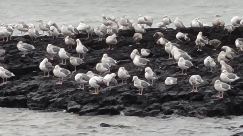 에너지를 보충한 뒤 다시 걸었다. 심심하기 그지없는 종달리 옛 소금밭을 지나 바다에 이르니 하늘은 먹구름으로 가득했고 비도 흩날렸다. 해안을 따라 이어지는 코스를 따라 걸으면서 줄지어 매달린 한치들의 사열도 받고 옹기종기 해안가 돌무더기 위에서 군집한 수백 마리의 갈매기 떼도 만났다. 바다는 먹구름 탓에 어두웠지만 바닷가에 들어선 고급스러운 호텔이나 펜션을 구경했다. 날이 밝으면 아름다운 해안일 듯하다. 그래서 이리 많은 고급스러운 호텔과 펜션이 줄지어 들어섰겠지.