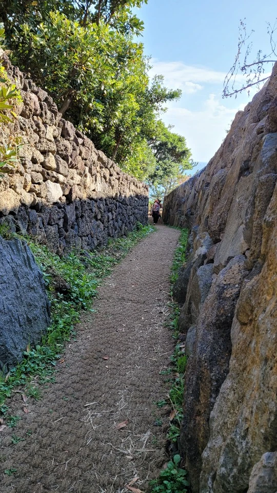 도심을 돌다 길을 잘못 들어 7 코스가 아니라 7-1 코스로 가고 있었다. 동양 최대 마르형 분화구라고 하는 하논분화구까지 와서 길을 잘못 들었다는 걸 깨달았다. 오던 길을 한참 되돌아가 코스 7과 겹치는 칠십리 시공원에 닿았다. 천지연폭포 근처까지 걷다가 간신히 길을 바로 잡을 수 있었다. 코스 7 화살표와 7-1 화살표가 섞여 있다보니 엉뚱한 길로 들어서는 여행객이 많다고 한다. 혹시나 코스 7을 걷고자 하는 이는 주의하기 바란다. 워낙 길치다보니 난 어김없이 길을 잘못 든 것이다.