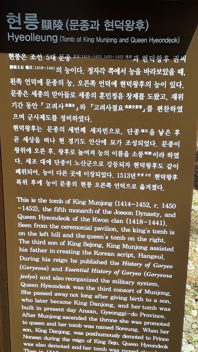 “아, 영월에 있는 단종 무덤이라도 이곳으로 옮겨와 부모 발치에라도 묻어줘야 했던 거 아닌가. 이제 유네스코에 세계문화유산으로 등재되어 옮기기도 쉽지 않을 텐데. 현덕왕후 능 옮길 때 같이 옮겼으면 좋았을걸.”